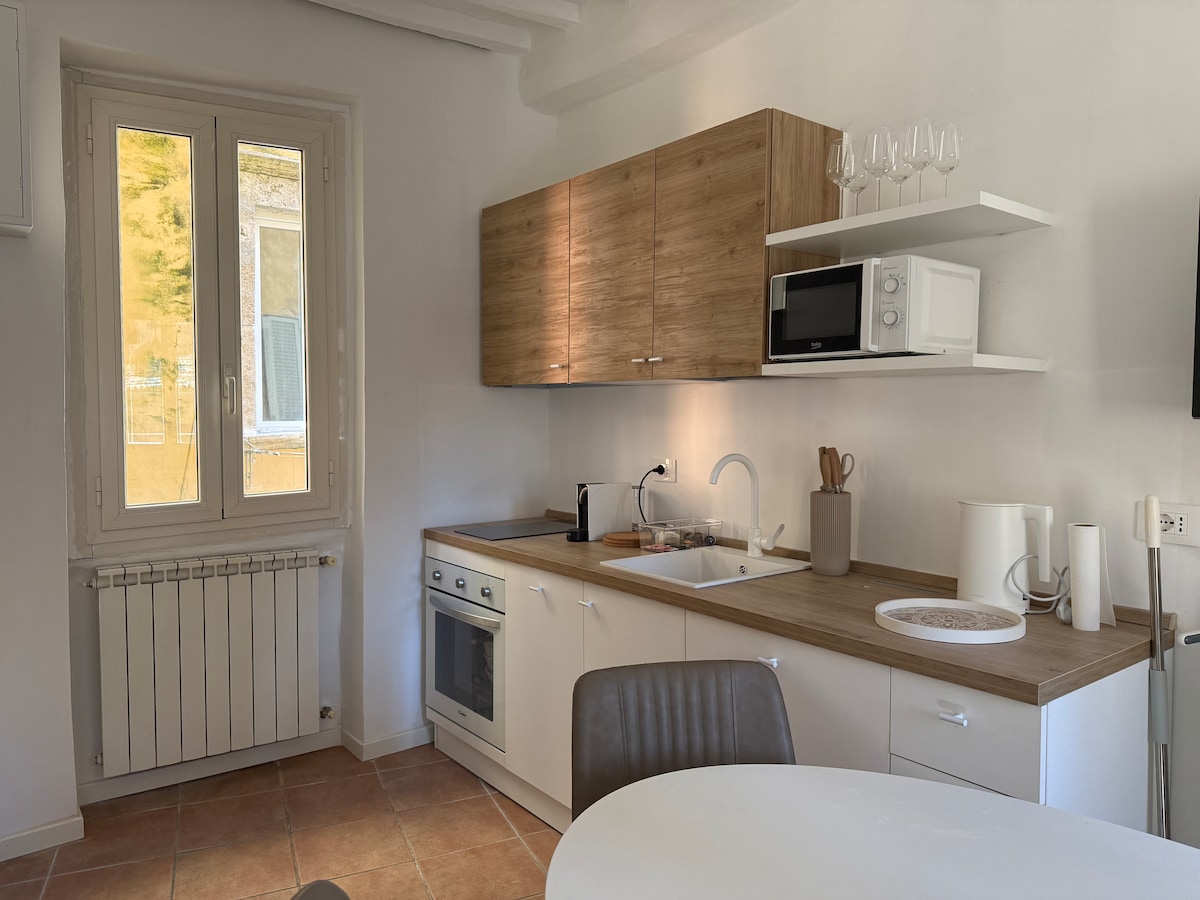 In 2023 my son Guglielmo and I decided to restore the old oratory of a church from the 1600s by creating a two floor apartment: upstairs we have 2 bedrooms equipped with AC and 2 en-suite bathrooms with shower; downstairs a spacious living room with stereo Available a table outside with great view and a nice garden 50 mt away where to have a private wine tasting or barbecue for all the guests of our 4 apartments, after 7pm if booked large in advance Large free parking area 100 mt away