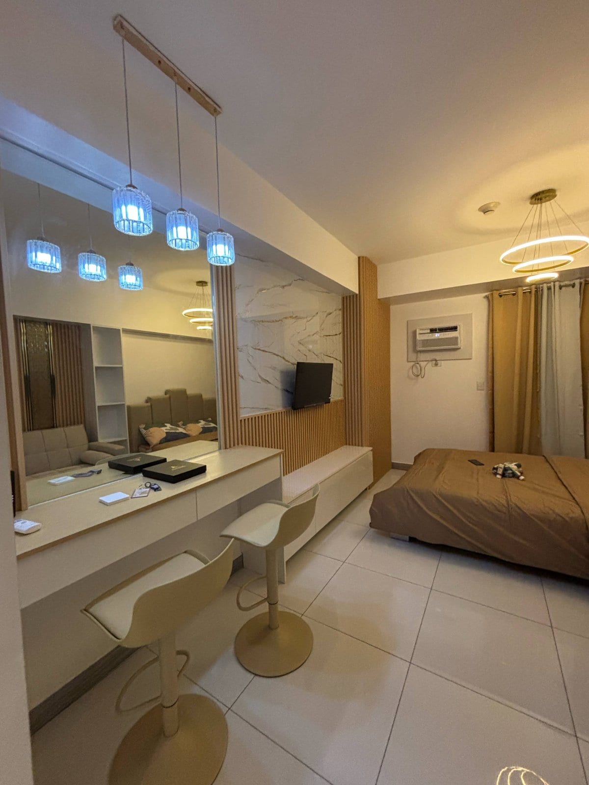 This stylish studio condo unit is located on the 21st floor of Sunvida Tower across from the famous Sm Mall of Cebu. It’s within 5 min drive to Ayala Center and Cebu IT Park. Coffee shop, laundry, nail salon and a local restaurant is available on the ground floor of the building. Airport is within 20min drive and seaports is 5 min away. This is the perfect location in Cebu City whether you’re just visiting, on a business meeting or just wanted a staycation.
