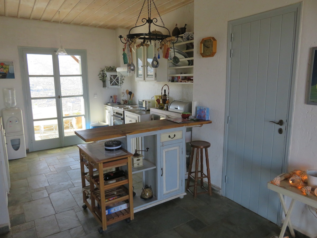 It is my pleasure to have the chance to host you in my tradiotional house at Kythnos island. The very house is located exactly on the centre of the island, a few metres outside of the traditional village Dryopida. For instance, this acommodation is 8km far of the port Merichas, 6km from the capital (Chora), while the closest beach is 3km far (Lefkes).