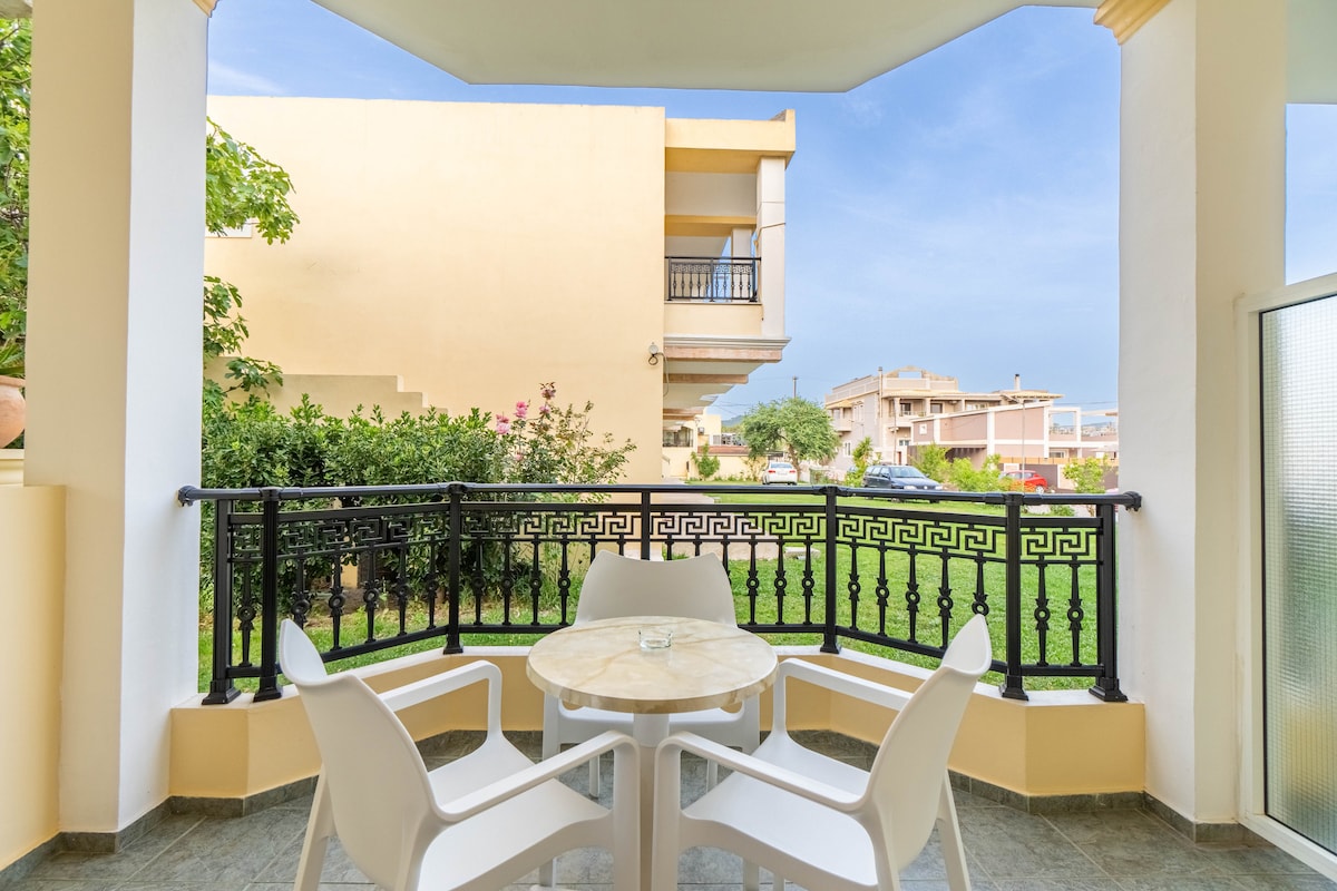 The Standard Apartment 3 is located in Corfu and offers you everything you need for a relaxing holiday. The property, 35 m², consists of a living room, a bedroom and a bathroom, and can accommodate up to two people. Additional amenities include Wi-Fi, television and air conditioning. A baby cot is also available. The apartment features a private balcony, ideal for evening relaxation. Enjoy the shared outdoor amenities, including a pool and garden.