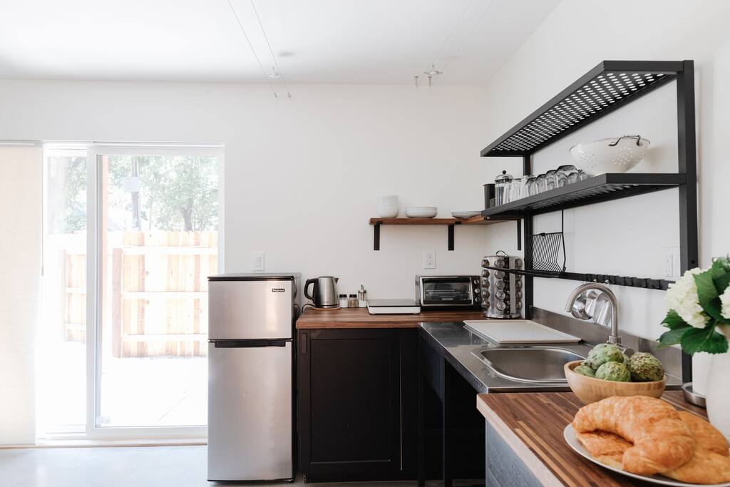 Stay in style at this bright and Boho studio, located in the heart of Chico! Modern minimalism meets iconic Southwest-inspo in this brand new build to create a space that is ideal for a weekend getaway. Finished in the spring of 2021, the Casita de Chico is a spacious ground level studio that thoughtfully blends industrial vibes with a relaxing atmosphere to create a space you’ll love to stay in!