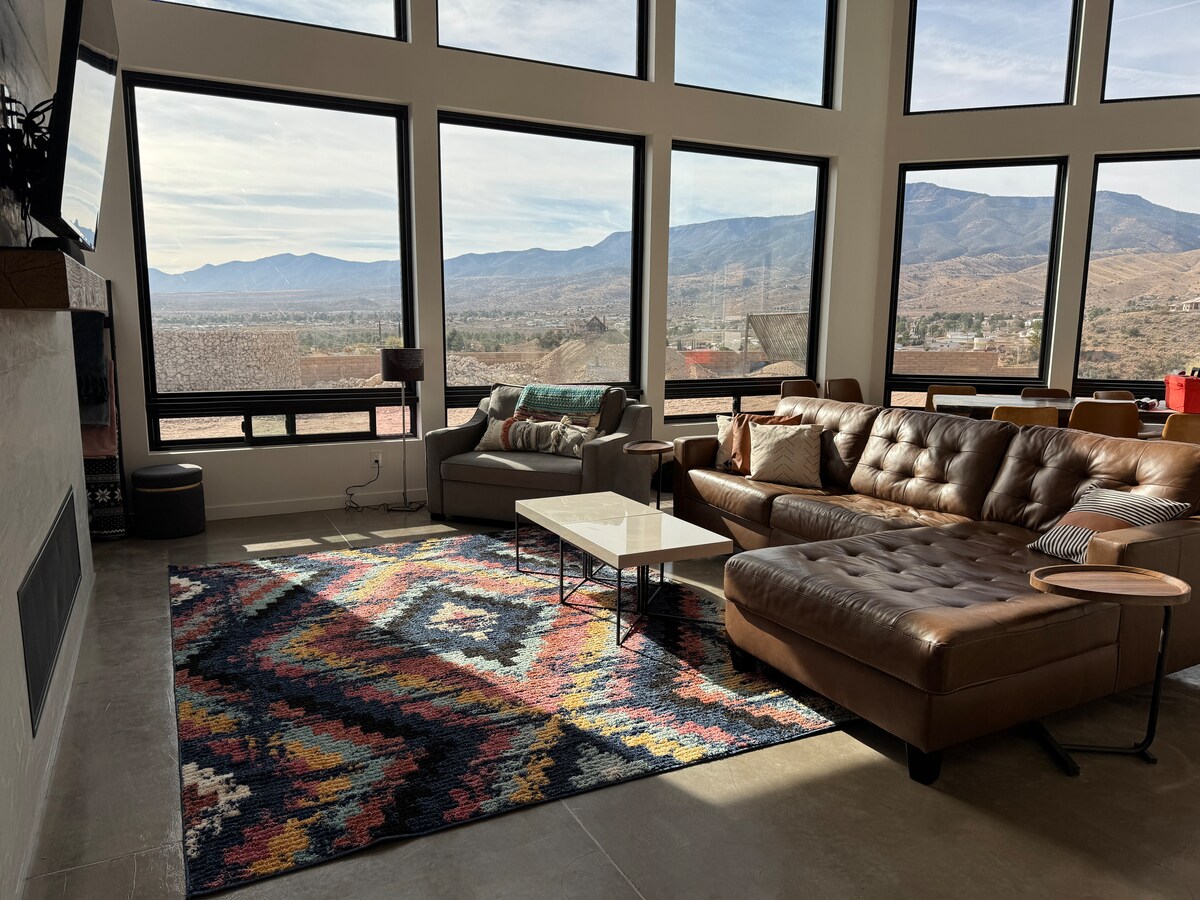 Escape to this beautifully decorated new 3-bedroom home, perched on 3 acres overlooking Oak Creek. Fabulous views of the surrounding Jerome and Mingus Mountains. Just 5 minutes from wineries, shops, and restaurants. Peaceful, serene, and comfortable with two outdoor patios featuring comfy furniture, a grill, and an outside gas fire pit perfect for stargazing. The custom kitchen and artistic designs throughout make this home truly special. Dogs are possible—please contact me with any questions!