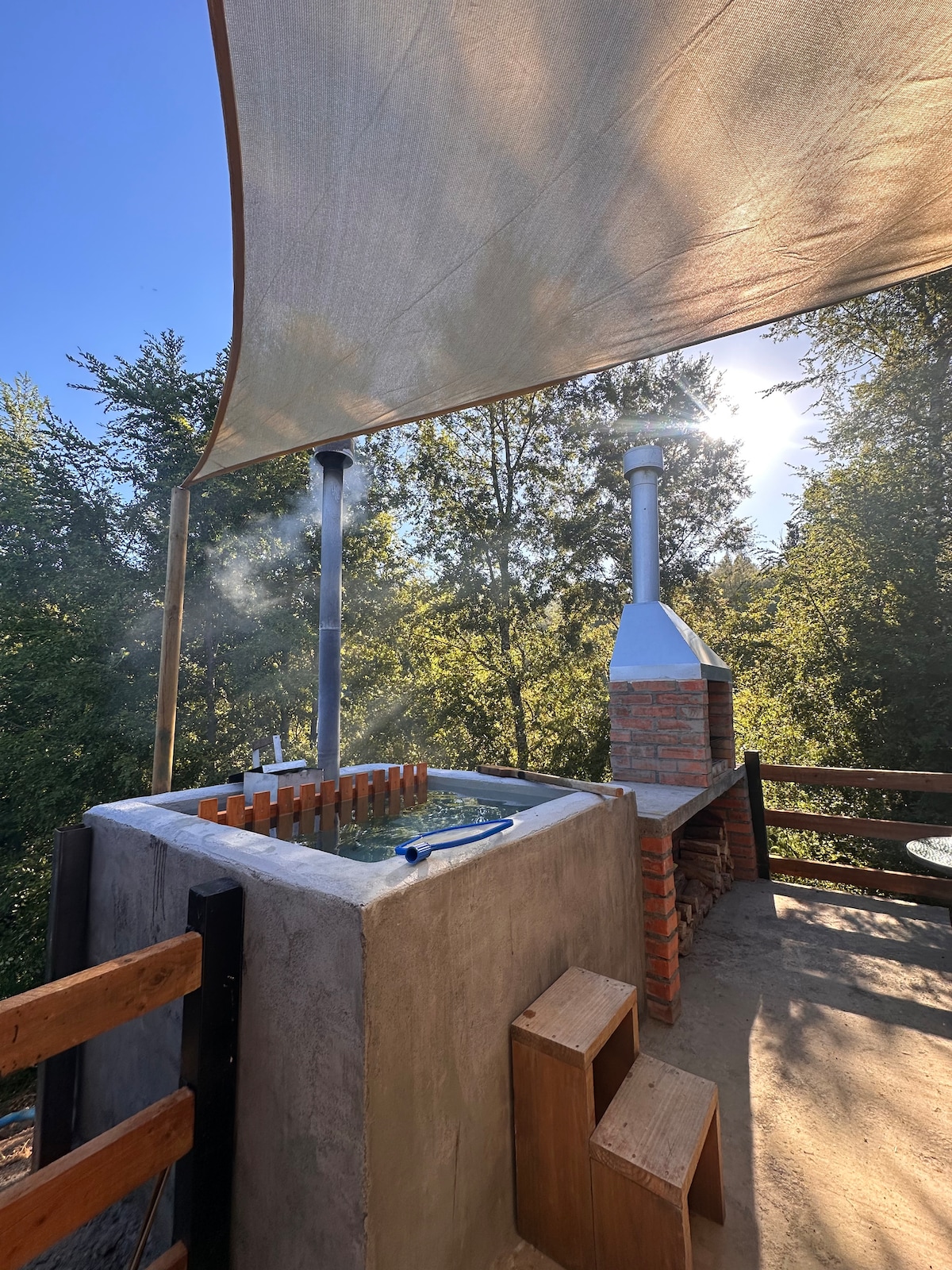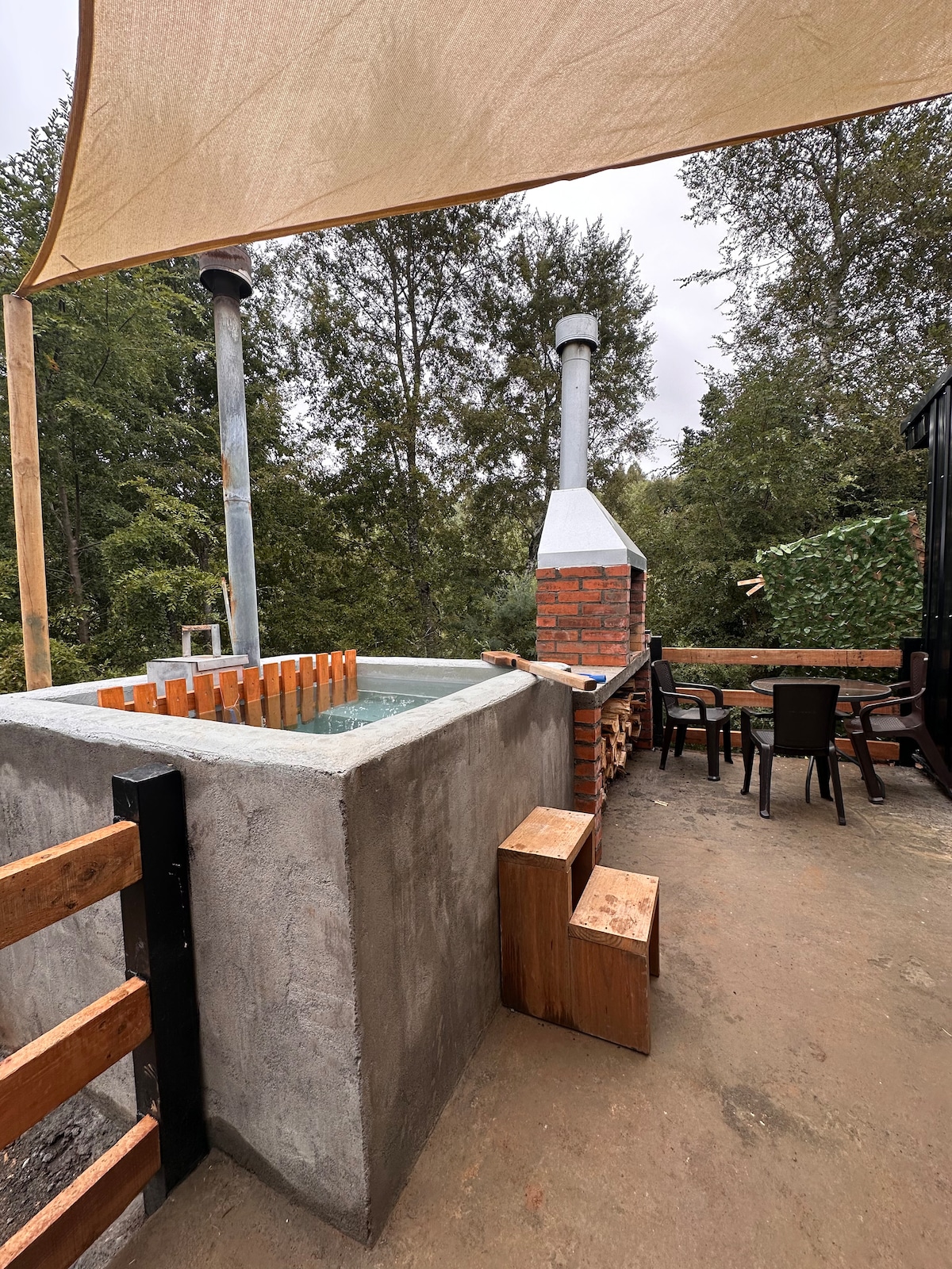 With a fully equipped kitchen, spacious living/dining room. Parking, fast WiFi and Smart TV. Extra condo space: (These areas are common) Pergola area: has an outdoor living and dining room, dishwasher, kitchen, and grill. No parties. It is located near Laguna Las Tres Pascualas, San Sebastián University, and Plaza Condell. There are two houses on the property, each is booked independently of the other and both can be booked for groups of up to 13 people