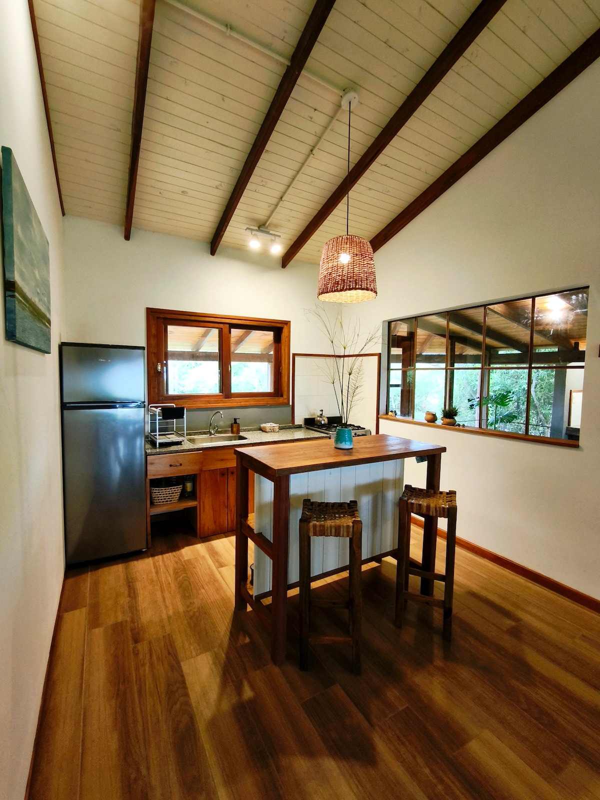 Espacio Tekoporã es un estado venturoso, alegre, contento y satisfecho, feliz y placentero, apacible y tranquilo. Hay "buen vivir" cuando hay armonía con la Naturaleza. En el Centro de Santa Ana, nuestro espacio te brinda: ● Descanso y conexión con la Naturaleza ● Patio amplio con Parrilla ● Piscina ● Tranquilidad y Seguridad ● Aceptamos mascotas, sin cargos adicionales → Casa con Muebles de Estilo y mucho arte → Seguridad 24 hs con Cámaras Exteriores ✔ Ideal para familias