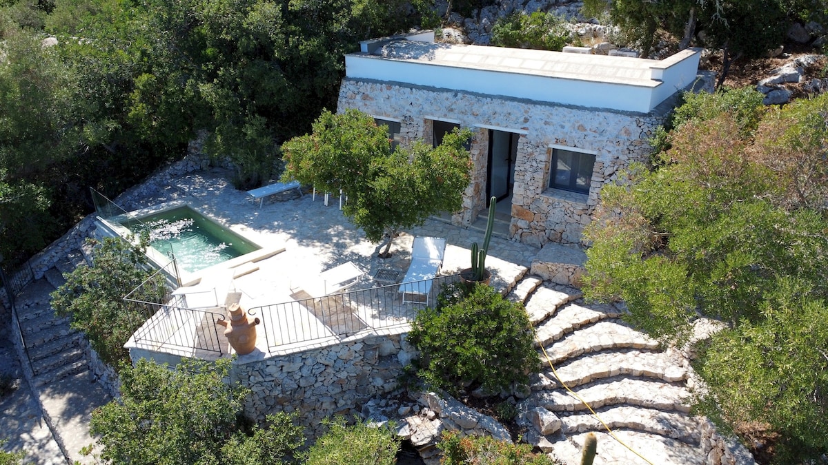 Villa Marinus is an enchanting property of about 3,000 sqm, located in Corsano, between the areas of "Guardiola" and "Funnuvojere." It can accommodate up to 10 guests and consists of the main house and an outbuilding. The villa also features a private swimming pool and terraces offering panoramic sea views of the Adriatic coast. The property is equipped with a heating system and internet connection, making it suitable for the winter months and for remote work.