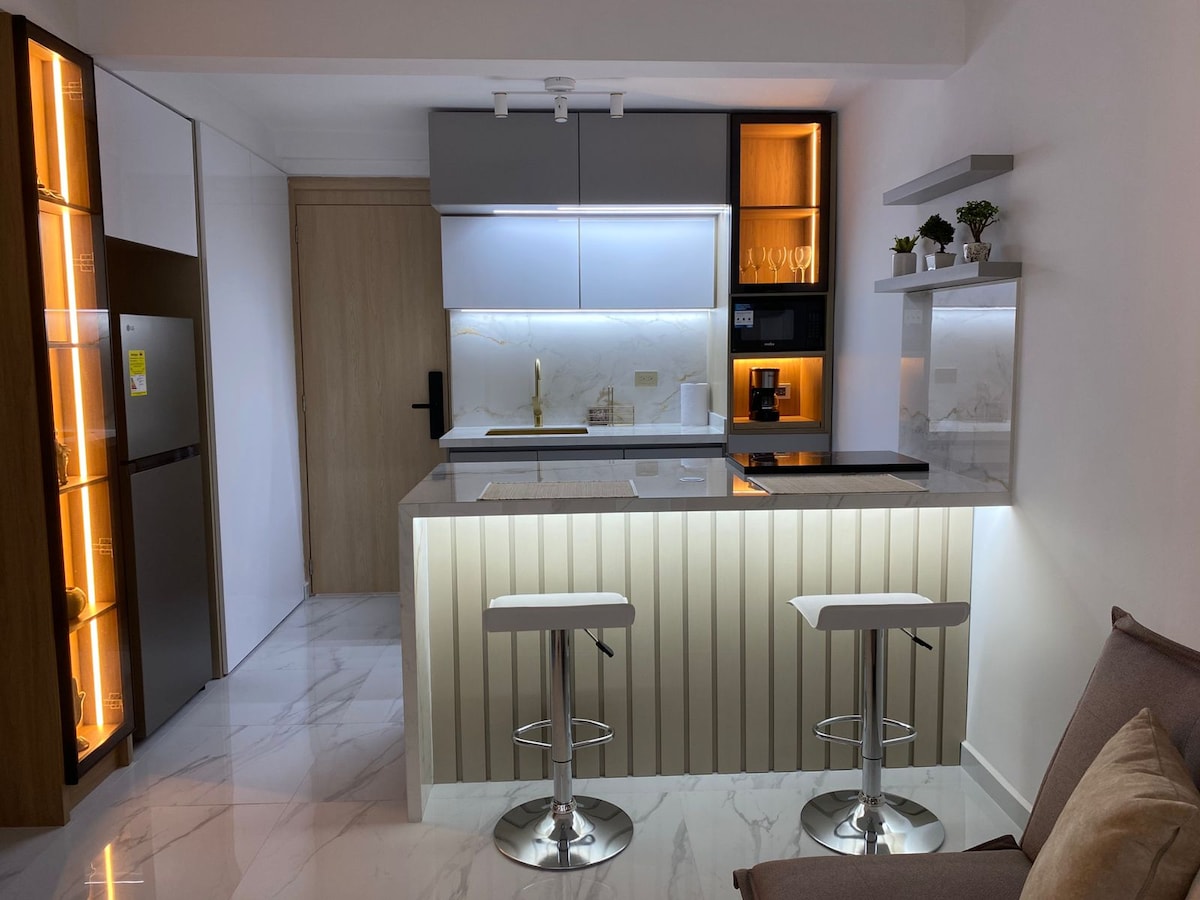 Modern ApartaSuite in the heart of Cali – Comfort. Enjoy a unique experience with a strategic location in downtown Cali. Perfect for travelers looking for comfort, tranquility, and proximity to everything the city has to offer. Wet area with Jacuzzi, ideal for relaxing after a day of sightseeing or work. You're within walking distance of green areas, main avenues, public transportation stations, supermarkets, restaurants, and bars. Enjoy a great experience!
