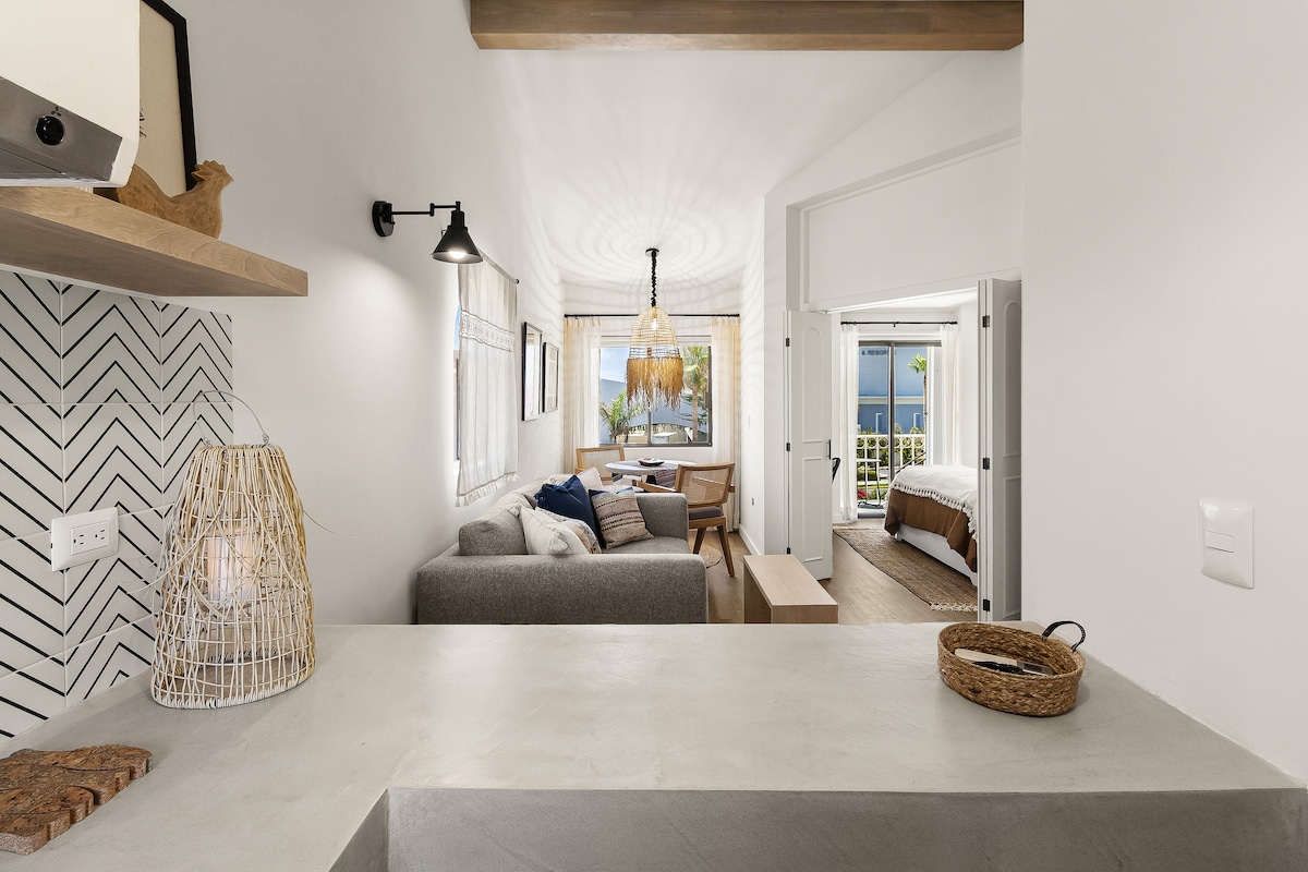 ✨Be our guest & stay at the cutest spot ever💫 In the heart of Romantic San Jose del Cabo-Resort Zone. Steps to BEACH, restaurants, tours, spas, shops & fun! 15mins walk to Historic Center & famous Thursday's night ArtWalk. Come for a long relaxing stay or for a short getaway! Book this magical spot in prime location with outstanding amenities! Shimmering & nicely equipped. Gorgeous La Costa Fase3, with 3 heated pools, 2 jacuzzis, controlled access & parking. Airport transportation. Fees apply.