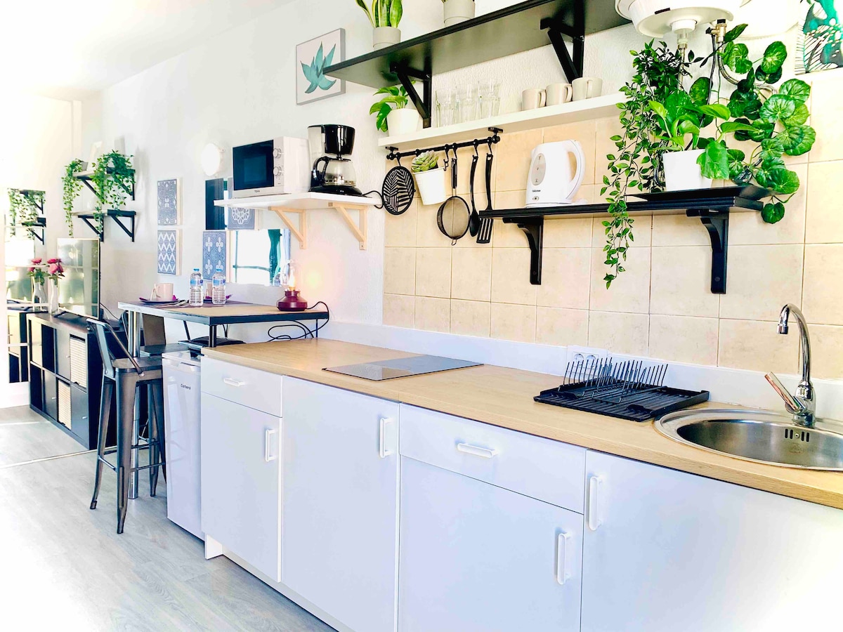 Nuevo apartamento en Puerto del Carmen, ubicado en un complejo muy tranquilo con piscina comunitaria con vistas al mar. Lo mejor de este apartamento es su terraza, dispone de cama redonda para tomar el sol, parrilla exterior para cocinar y una gran mesa para comer o trabajar con vistas al mar. En el interior dispone de salón con smart TV internacional, sofá muy confortable y una pequeña mesa de desayunos. La cocina está totalmente equipada: horno, microondas, frigorífico, sartenes y menaje.