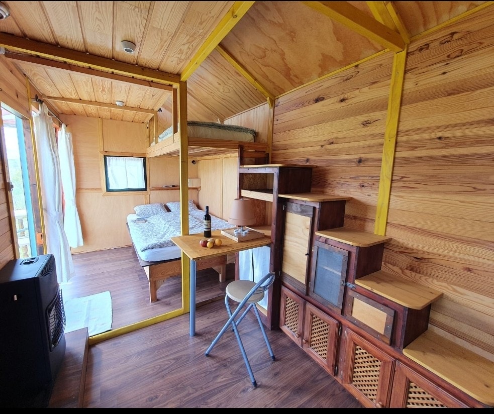 Cozy wooden cabin just 650 m from El Palmar beach. Ideal for couples looking for relaxation, nature and special moments. It has a bedroom with bathroom, bright living room, air conditioning and equipped kitchen. In the private garden you can enjoy a barbecue, sunbathe or take an outdoor shower. Private parking included. 🌿🌊💫