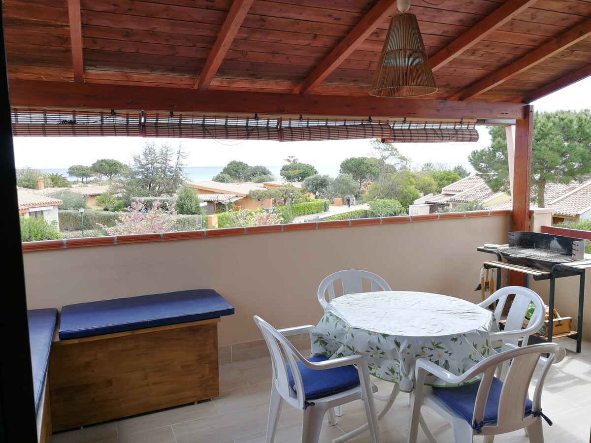 A cozy apartment on the first floor, with a parking space, in the residential complex La Residenza del Sole, 600 meters from "La Maddalena beach", a pearl of southern Sardinia. Immersed in a residential village that offers all the amenities you could need. You will relax in an oasis of peace a stone's throw from the sea.