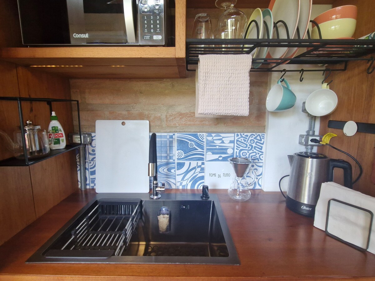 Suitable for young couples, and may receive 2 more people. Ideal for day trips and enjoy pleasant nights by the fireplace. Local enveloped by native forest to reduce stress, spotting birds and wild animals. Excellent location 3 km from the centre of Cunha, with easy access to the road and close to the main tourist attractions - Pedra da Macela, Parque Florestal, ceramic and craft workshops. Enjoy autumn in the mountains, with warm days and cool evenings by the fireside.