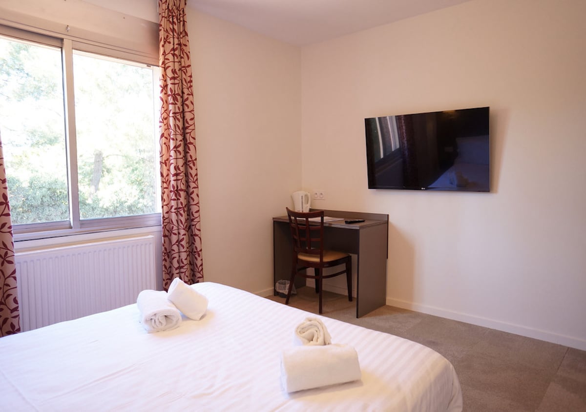 Come and enjoy a comfortable studio in a hotel complex. King size bed, equipped kitchenette, private bathroom all tastefully and modernly decorated. Parking access in front of your accommodation. 24-hour service. On site, Boutique, Bar, Restaurant by reservation, offices, Meeting Rooms. TV lounge. Outdoor games upon request. Heated pool from May to the end of September.