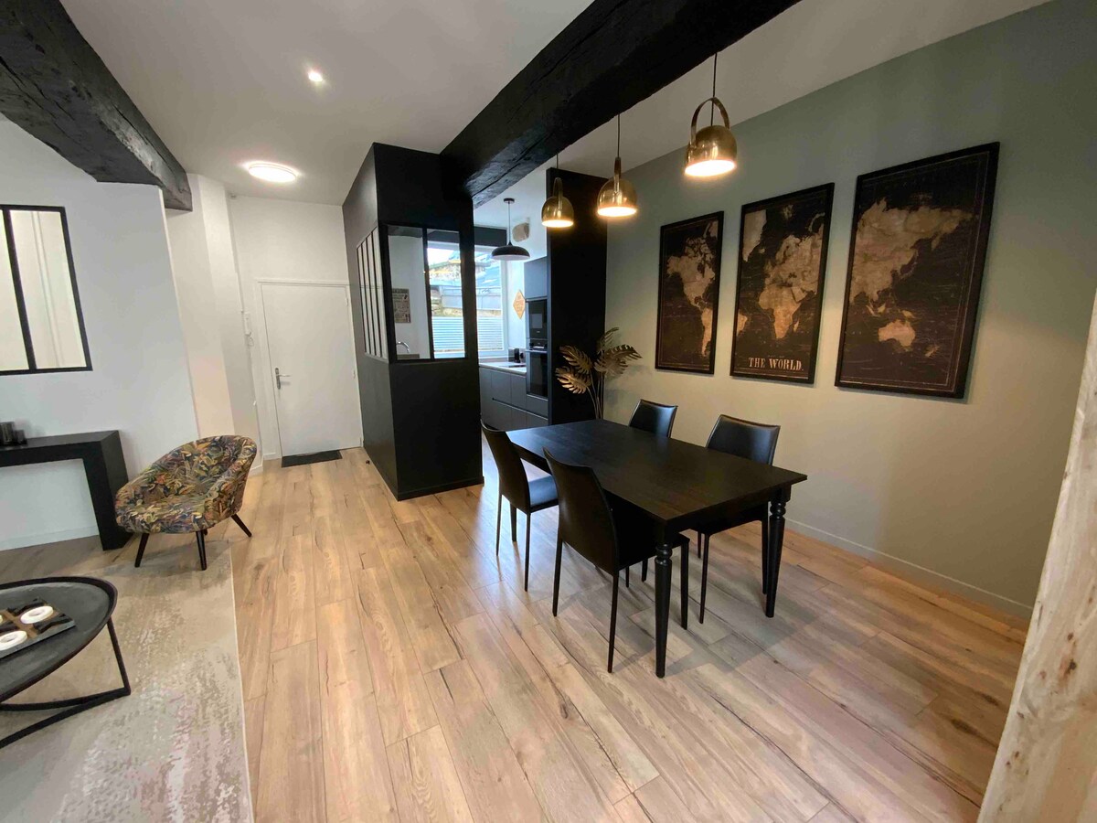 Located on the 1st floor without elevator, of an 18th century building, in the heart of the historic center, this 52 m² apartment was completely renovated in 2020, with all the comforts necessary to spend some good times. Right at the foot of the apartment, you will have the choice to go down the famous Rue du Jerzual, to discover the port and its beautiful walks along the Rance, or to discover Dinan, at the whim of the cobbled streets. (Maximum capacity: 4 adults + 1 baby)