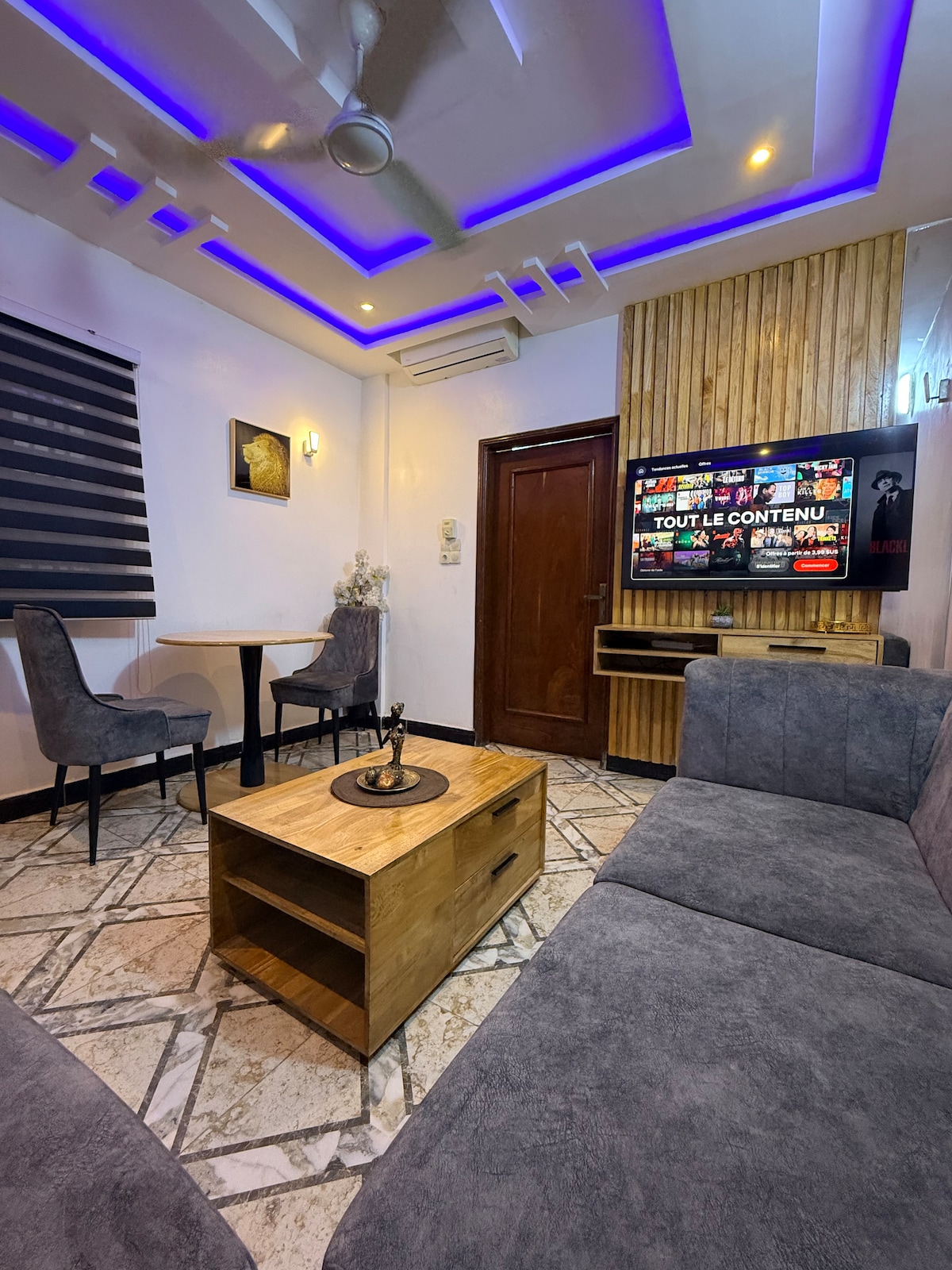 Appartement moderne et climatisé à Cotonou, proche de la pharmacie Sacré-Cœur. Profitez d’un salon confortable avec TV connectée, d’une chambre élégante et d’une cuisine équipée. Quartier calme et sécurisé, idéal pour un séjour détente ou professionnel. Wi-Fi haut débit et commodités à proximité.