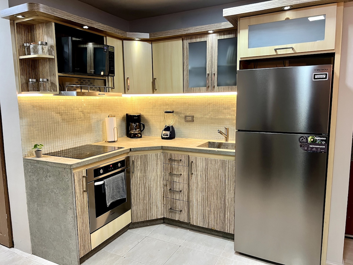 Beautiful apartment located in Mañongo.Res: Terrazas de Mañongo. This exclusive property has 82M2; they are distributed as follows. LIVING ROOM: with modern TV, coffee table,sofa and A/A. KITCHEN: fully stocked; electric oven, microwave oven, hood, refrigerator, utensils and cutlery Separate laundry area: washer, dryer, bats and tank of 560L. 3 bedrooms with closet and A/A(2 beds ) and 2 full bathrooms (one of them in the main room. EVERYTHING IS MODERN