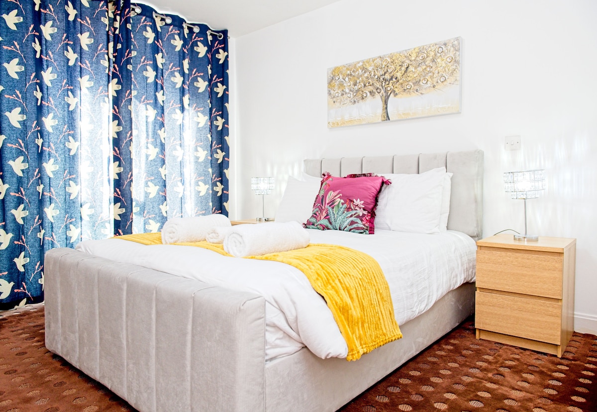 Our stylish 2 bedroom apartment in the desired Coventry location has an open plan living-kitchen diner area, it's well decorated and cosy, with benefit of superfast fibre WIFI, FREE PARKING on property driveway, SMART TV, a fully furnished kitchen & super comfortable double beds in bedrooms. Very good proximity to the city centre (5 min. drive), train station & walking distance to local shops. Perfectly suited for professionals, families and couples and providing home for home experience.