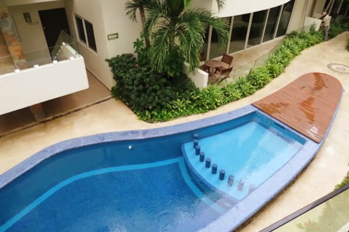 Beautiful holiday apartment. Fully furnished and equipped, ground floor 10 minutes from the nearest beaches and the famous 5th Avenue 45 minutes from Cancun 📌Fully equipped kitchenette, also with air fryer 📌 Bathroom with toilet with bidet 📌2-ton air conditioning 📌Pool 📌Surveillance 📌Washing machine or laundry service with pick-up from the apartment door. 📌For parking use, check house rules.
