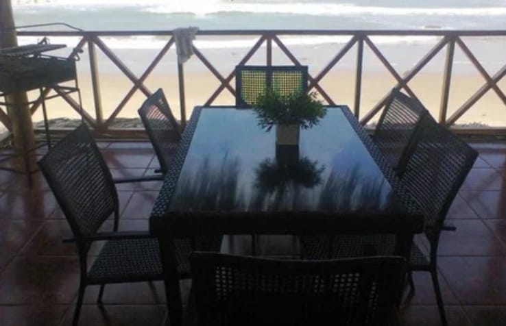 El alojamiento cuenta con 2 edificios el primero de un piso y el segundo de 2 pisos, se alquila toda la propiedad que incluye el área social que tiene una amplia área verde, terraza con piscina sin fin frente al mar y zona de parrilla. En total contamos con 6 dormitorios para 15 personas.