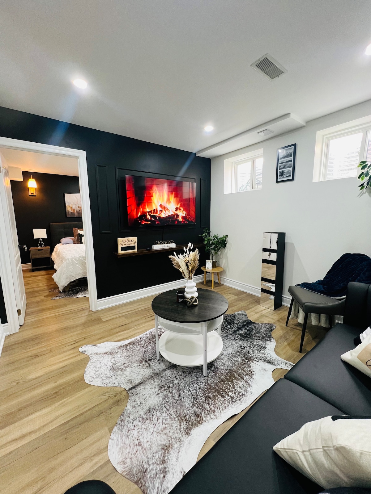 Welcome to our cozy basement apartment! This modern Airbnb is located in a peaceful residential neighborhood 40 min drive from Toronto downtown and an hour from Niagara Falls. The well-lit space features a comfortable queen-sized bed, ample storage in the spacious closet, and a beautifully designed interior with natural light flooding through large windows. Note: We have 2 single folding matresses available to place on the floor in the living room. Extra linen and pillows are provided.