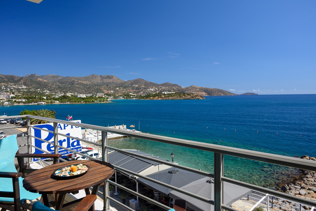 A seafront property situated in a prime location of Agios Nikolaos, on the north-east coast of the island of Crete. Perla apartments stand directly across from the water's edge and a small pebbly beach. A short walk to the vibrant town centre with an array of restaurants and shops and the famous 'Voulismeni' bottomless lake. It is less than an hours drive from Heraklion international airport and free parking area is adjacent. We have 4 apartments available for guests.