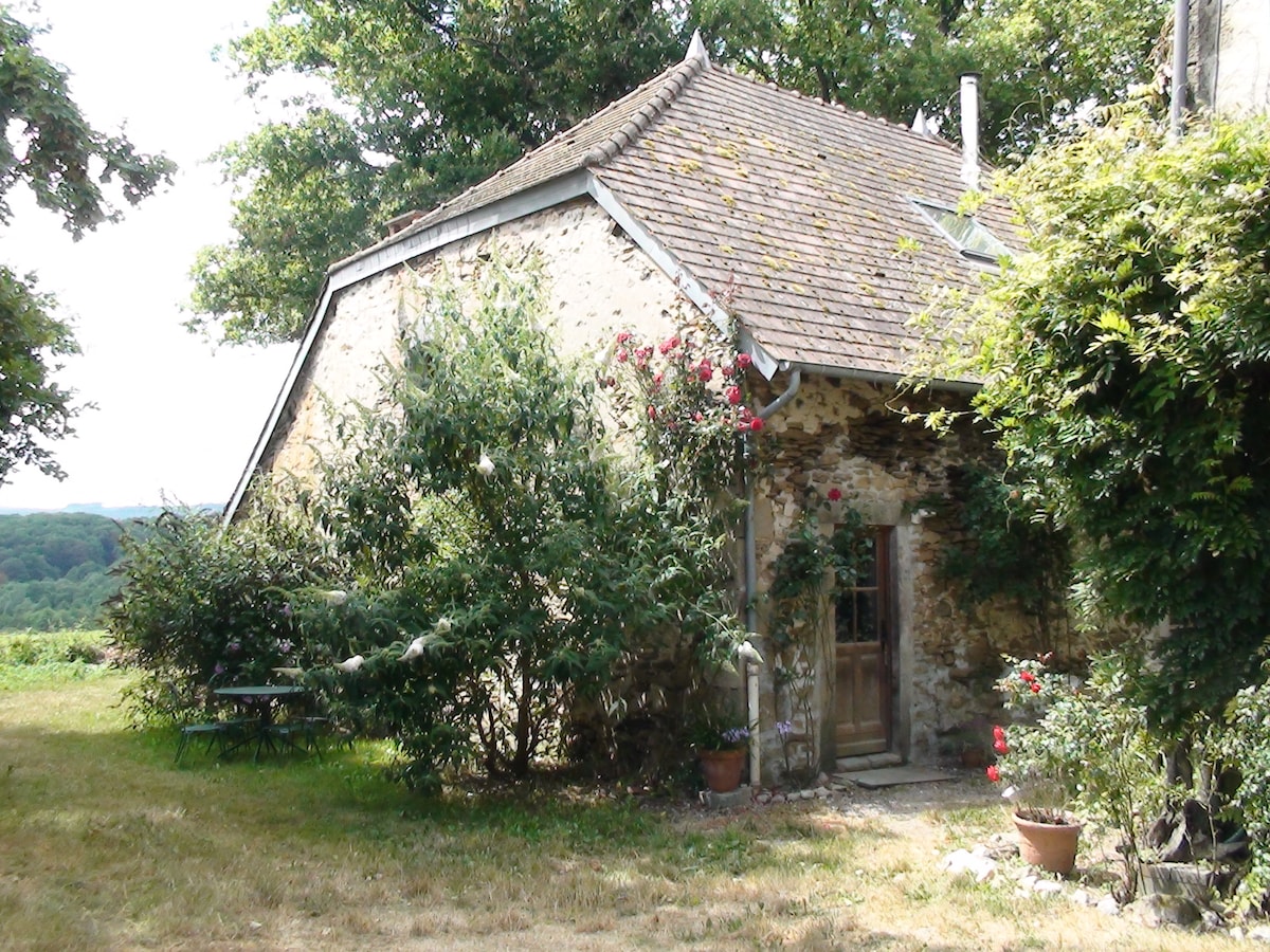 Next to our farm is the small gîte on a dead end road. The old barn was transformed by us into an independent studio with all the amenities (including solar panels) for a carefree vacation; open space with kitchen, sitting area, queen size bed and bathroom. In front of the gîte is the covered private terrace with fencing, so that dogs can safely be off their leash. In a separate part of the garden is the swimming pool, which our guests can use. Suitable for 2 people. Pets are welcome.