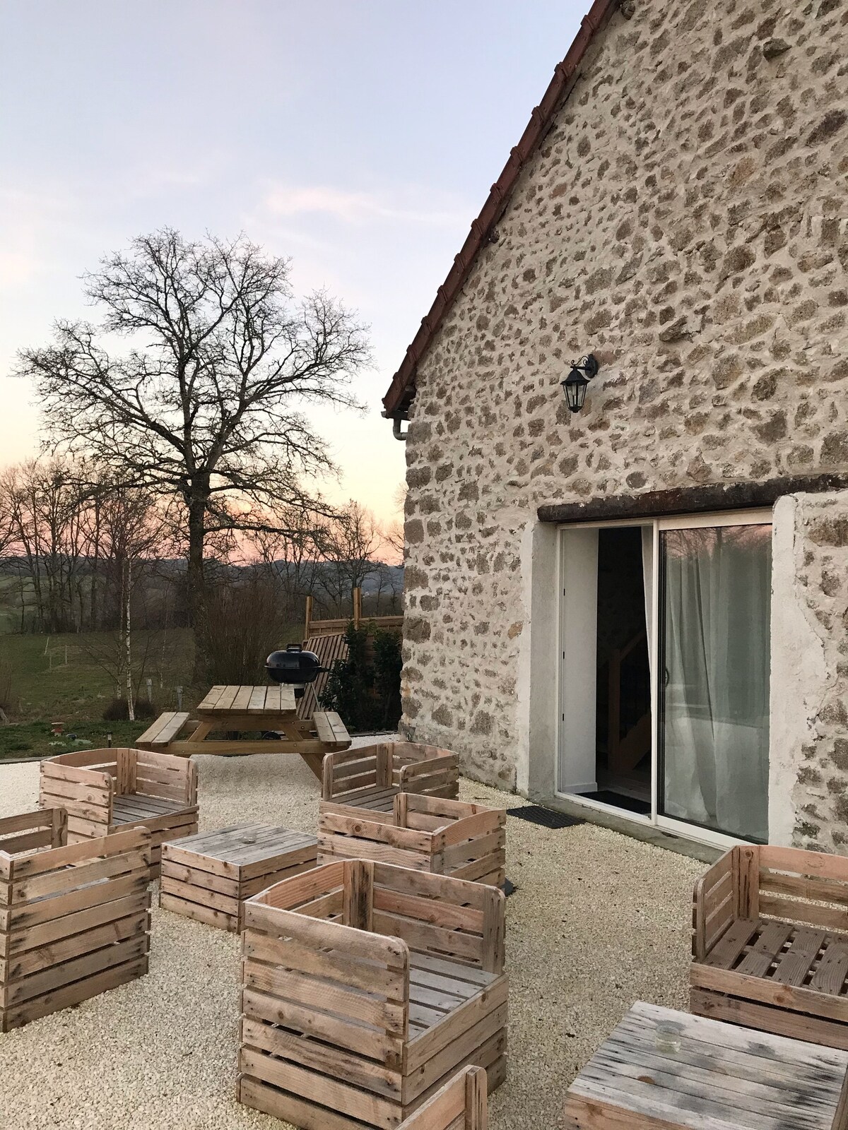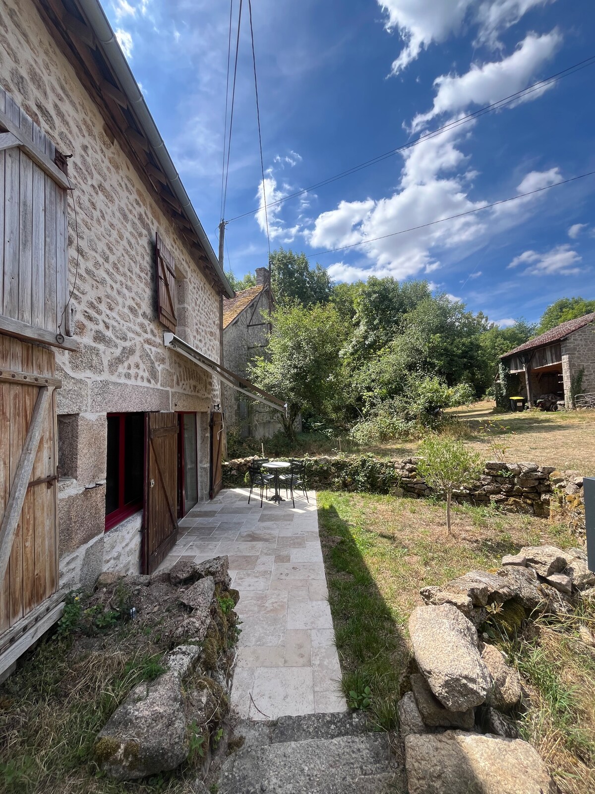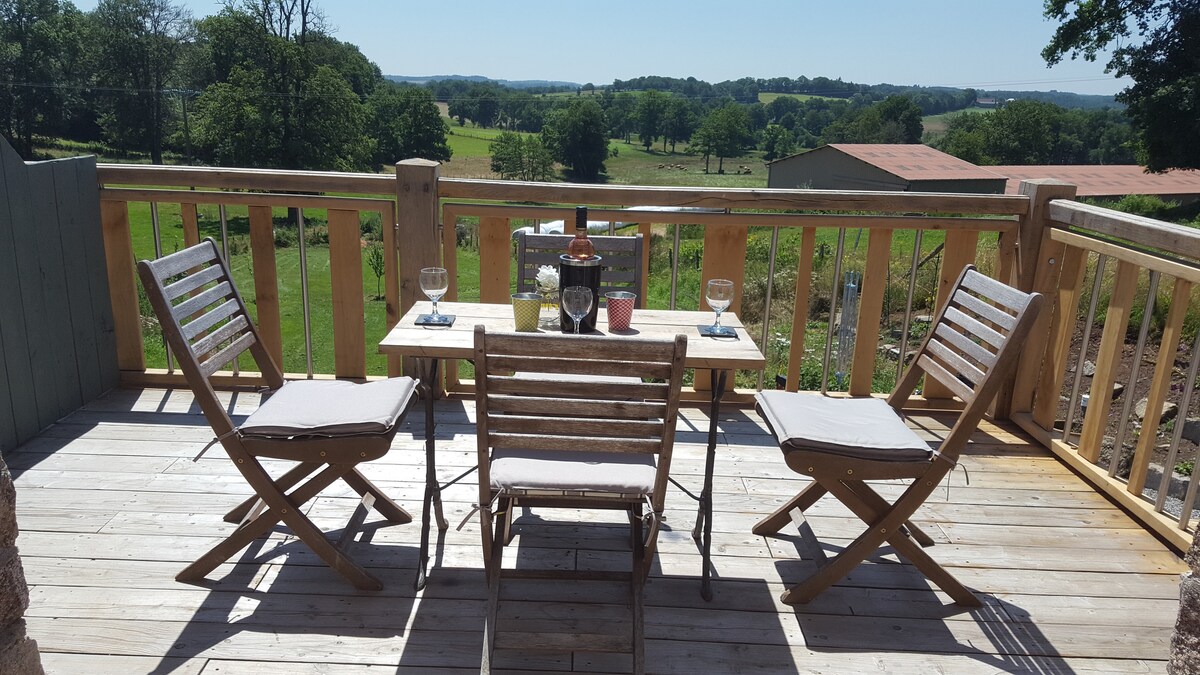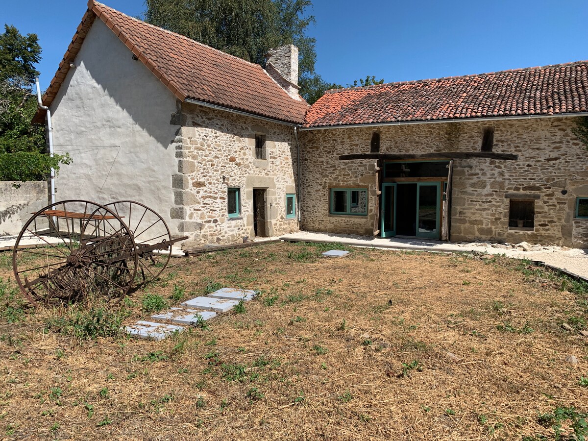 Welcome to the Charming Gîte Les Trois Chênes! A comfortable cottage in the countryside, between Limoges and Guéret, close to Lake Vassivière, the Millevaches en Limousin Regional Natural Park and the Auvergne Volcanoes Regional Natural Park. Old independent barn, renovated and decorated with great care. The perfect place to recharge your batteries with family or to meet up with friends, in peace, while enjoying the various sports and cultural activities of the region.