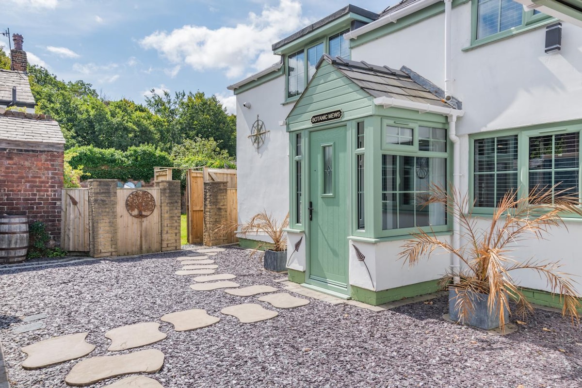 'Where people matter..' Victorian two bed terraced character cottage home-from-home with private parking and secluded garden. Newly renovated. Walk everywhere! Three fantastic pubs and cafe all within 4 minutes walk. Three more cafes 20-30 minutes walk. Indian, Chinese, fish and chips and two convenience stores within 3 minutes walk Scenic bike rides, beautiful strolls along the canal. 20 minute train journey to the beach or 50 minutes for a shopping spree in Manchester city.