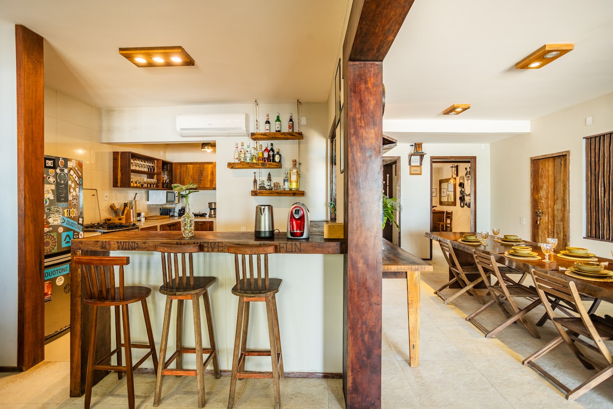 The luxury of a small space where nature, tranquility and regional materials blend into a surprising location where the wind is omnipresent. Beachfront house with feet in the sand, located in the kite point, 300 meters from Rancho do Kite, next to the Balcon restaurant and 300 meters from the main street, on a paved street. Composed of 4 en-suites, kitchen, living room, dining room, rooftop with Jacuzzi and barbecue grill. It also has a lawn and compressor to inflate the kites.
