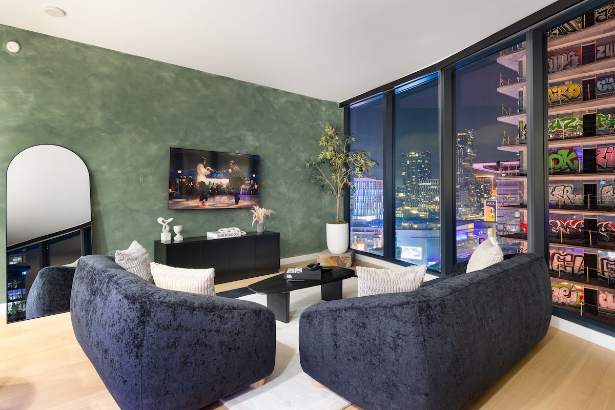With sky-high, 12 ft ceilings, breathtaking views of LA, and all the luxuries one would expect from a 5 star accommodation, our condo is the perfect home away from home for your next trip to LA! This defines “centrally located.” Walking distance to LA Convention Center & Crypto Arena, 10 minute ride to Hollywood & Universal Studios, and less than a half hour from the beaches of Santa Monica & Malibu. That's if you ever leave DTLA's all-new restaurants, shops and museums!