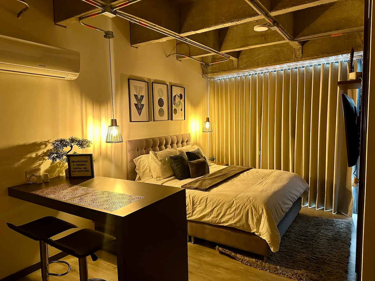 Welcome to a haven of luxury and comfort in the heart of Pereira! This stunning loft offers an unrivalled stay with its modern design and all the amenities you need, including air conditioning ❄️, WiFi 🌐, TV 📺 and hot water 🔥. Strategically located in front of the lively 30 de Agosto Avenue, you'll be just minutes away from the city's main attractions, including the airport and the Unicentro shopping centre 🛍️.