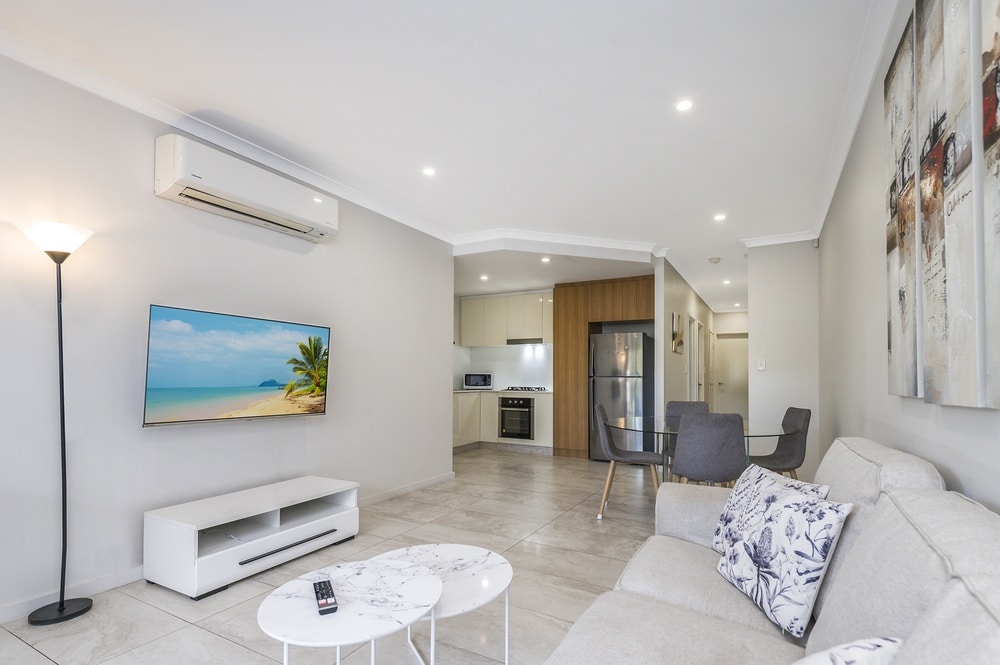 New funky Bali style villa. Beautiful indoor outdoor flow when opened up. Secure keypad card entry with undercover off street parking. Shared Swimming pool (heated - 3 season exc. winter) available on daytime hrs with waterfall feature. 2 Bedroom, TVs In all rooms with Netflix, Stan and Prime connected, Bluetooth wifi Stereo, Aircons to all rooms, indoor fireplace, small library New Addition ! Brand new Deluxe queen overflow room "Bedroom 3 - theroom" available as an extra charge