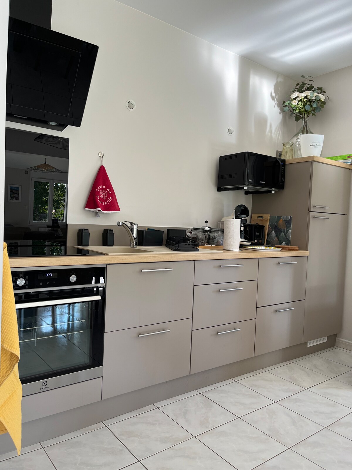 Located in Cumières, renovated Champagne-style house with character, not overlooked, closed courtyard, BBQ, garden furniture. base rate 6 people or extension. Ground floor, toilet, washing machine. Well-equipped kitchen with dishes for 12 people, dining area, dishwasher, coffee maker, kettle, toaster, microwave, freezer, dining room for 12 people and large living room with TV 1st floor: 3 bedrooms, 3 bathrooms, separate toilet Extension: Living room sofa bed, TV. 1 double bedroom, 1 private bathroom toilet 2 Baby cots, high chair, baby bouncer, bathtub