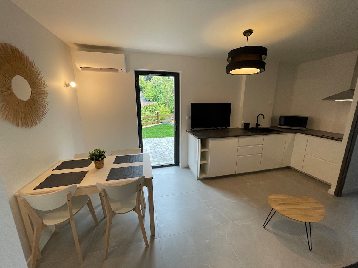 We will be happy to host you in this cozy, independent apartment, adjoining our house located 25 minutes from the center of Lyon and at the gates of Beaujolais. You will enjoy all the comforts of a brand new and very well equipped apartment but also the large garden of our house with views of the Monts d'Or and on sunny days of the heated pool. A kitchen open to the living room, a bedroom and a mezzanine with a double bed make up the apartment Parking in enclosed property