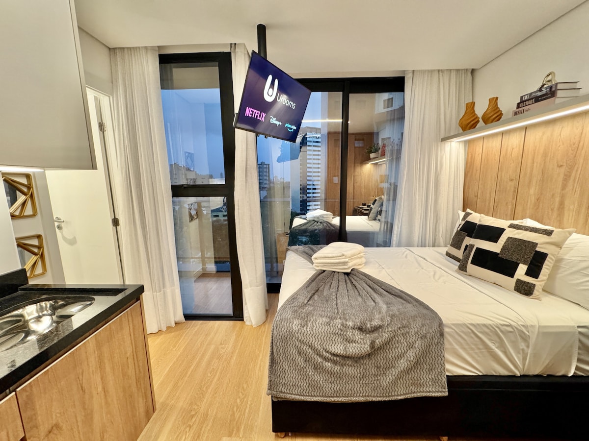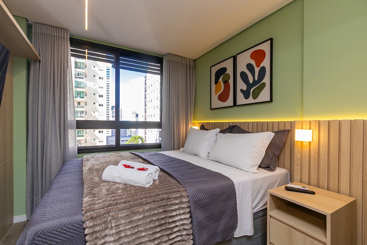 Studio prox shopping Curitiba Wifi, TV a Cabo e ar