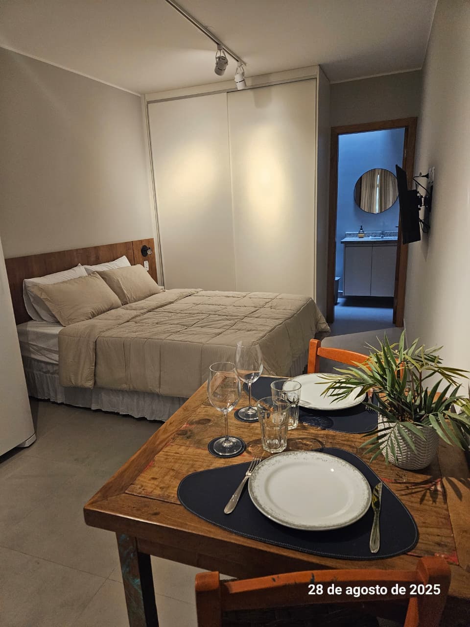Studio located at the Ópera de Arame, accommodating up to 5 people. Quiet location, green area, pet friendly, next to the second most visited tourist spot in Curitiba. Kitchen, workspace and high-speed internet are available in our space, as well as other amenities. Ideal for resting with tranquility, in addition to being the best and closest place for those who go to Shows and Events in Parque das Pedreiras. Market, bakery, pharmacy and restaurants are very close by.