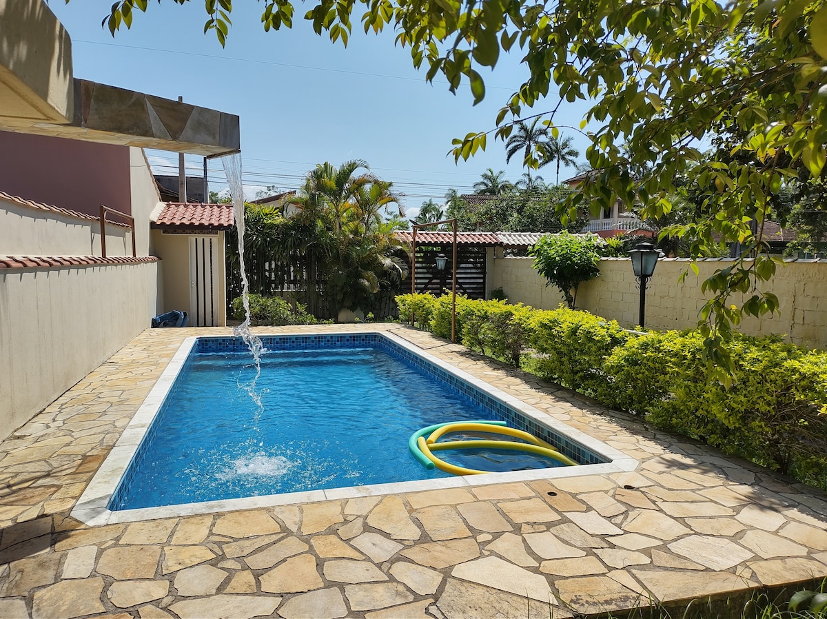 One-story house with bedroom, living room/dining room for up to 6 people. I don't rent to groups of young people. We do not accept pets (do not insist). 500 Mb fiber internet TV with multiple channels Families and couples only. Keys must be picked up in Tatuapé/SP. Full kitchen, microwave, Wi-Fi, barbecue area and swimming pool. In the Massaguaçu neighborhood, 800 meters away, we have the beach, several shops and a beautiful boardwalk with a bike path. Guests must bring bed linens, bath towels, dish towels and toiletries, including toilet paper.