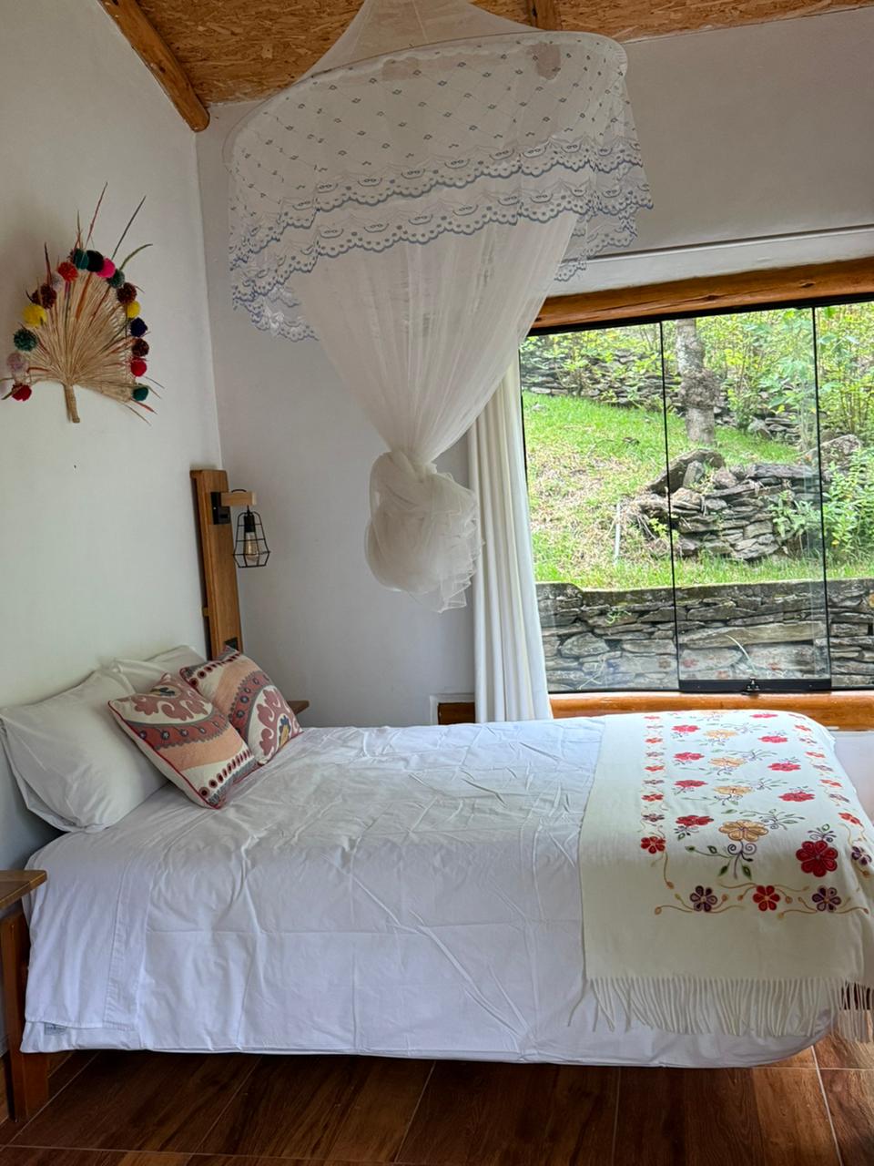 Here are some reasons to stay at this place: - Its design and ecological decoration: stone, earth, wood offer warmth and harmony with the environment. - Its large windows offer views of the mountains, valley, and gardens, with abundant light and sun. - Its location nestled at the foot of the mountains, walking 20 minutes you can reach the Arin Falls, enjoy its majesty and viewpoint in an environment conducive to incredible photographs. - High-speed and stable Internet.