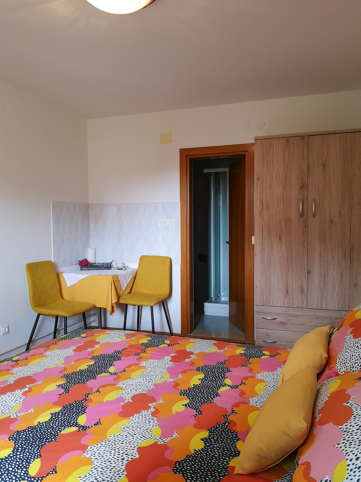 Our apartament is in the town Rovinj that has begun its romantic life on an island, narrow streets,still untouched by modern urbanism. You’ll love our apartament because of the location, and the ambiance. This apartament is good for couples, business travelers and families. Our apartament is close to the beach (just 250m!) nature (Cuvi-long promenade close to the beach, just few meters from our apartament), sport and recreation activities and ofcourse, restaurants and stores.