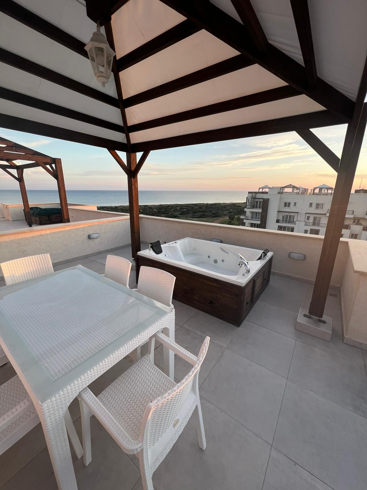 Apartment is 72 sq.m. and extends itself to 16 sq. balcony where one can enjoy great sights to the Mediterranean sea; it has 3 bedrooms and 2 bathrooms and is fully equipped with all the essentials. The wonderful Thalassa beach is located just few minutes walk from the apartment. Cosy "Deks" restaurant as well as Mini-market, Large outside pool, indoor heated pool, great Spa-center and Gym available on site. Larnaca and Ercan airports can be reached within 1.10 hour drive.
