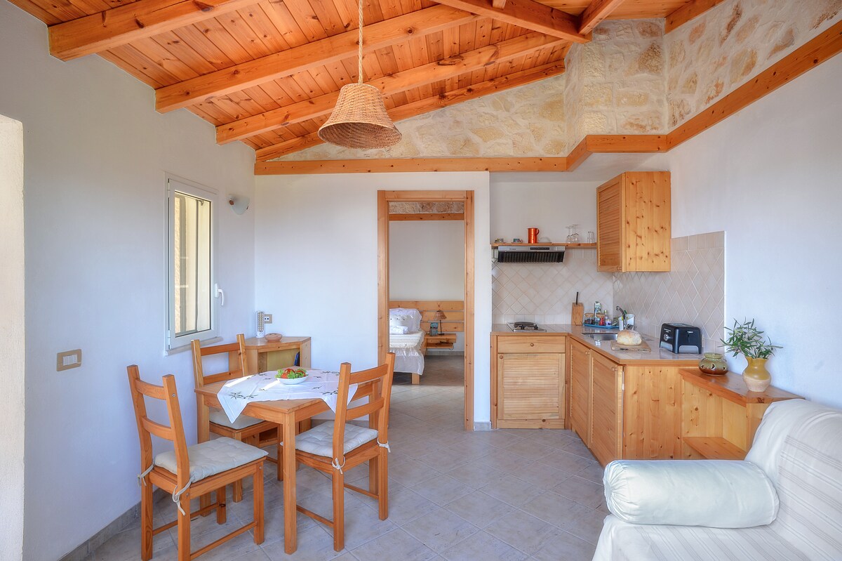 WE OFFER A STAY IN COMPLETE TRANQUILITY IN A PRIVATE COMPLEX OF HOLIDAY HOMES, LOCATED IN THE MIDDLE OF THE GREENERY IN THE AREA OF SANTA MARIA DI LEUCA A vintage Salento trullo in the hills, with a beautiful view of the sea and the coast of Pescoluse, in a quiet and breezy area, surrounded by the nature of a "centuries-old" olive grove. It is a home with a certain charm and originality that is above "The Maldives of Salento". However, the large property offers a lot of tranquility.