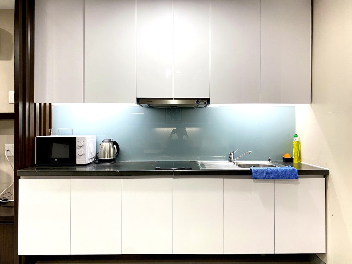 An apartment in the corner of the building (8th floor). You can observer the colorful of Landmark 81 building at night and the city view in other window. Let it bring you more new positive experiences with good senses. - The apartment has everything you need for a comfortable stay: comfortable bed, stove, kettle, refrigerator, washing machine with Clothes dryer, microwave, air conditioner, hot water, milk bath, shampoo, towels, toiletries.