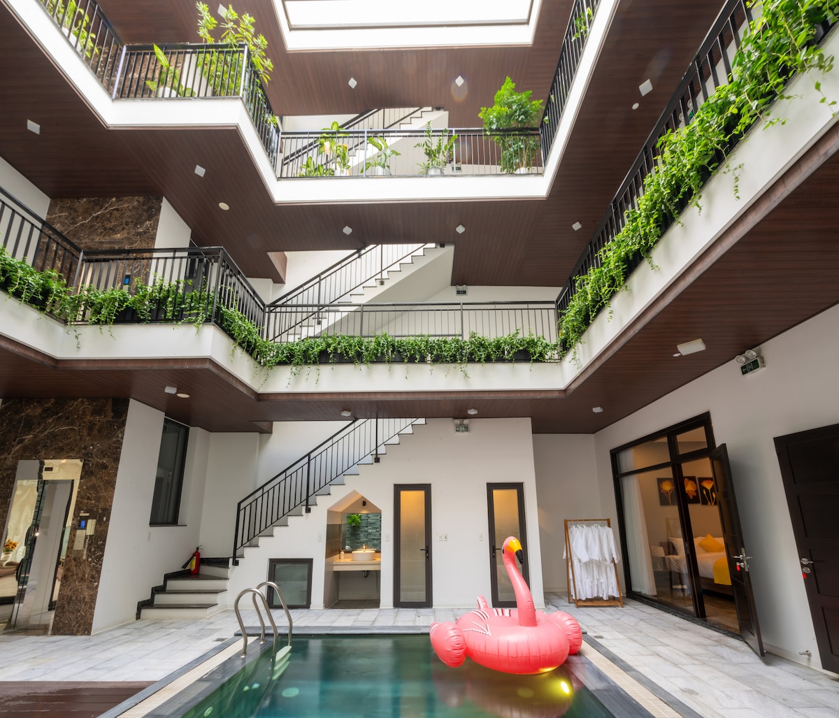 This is the Danang Blue Points Pool Villa. The villa is entirely private (free pick-up service). This pool villa is perfect for a vacation with friends or family. The villa is located on An Thuong Foreign Street, surrounded by cafes, spas, restaurants, supermarkets, and bars. My Khe Beach is a 5-minute walk away. The airport is a 10-15 minute drive. The swimming pool measures 3.2m x 8m (1.4m deep). Purified water is available in the kitchen.