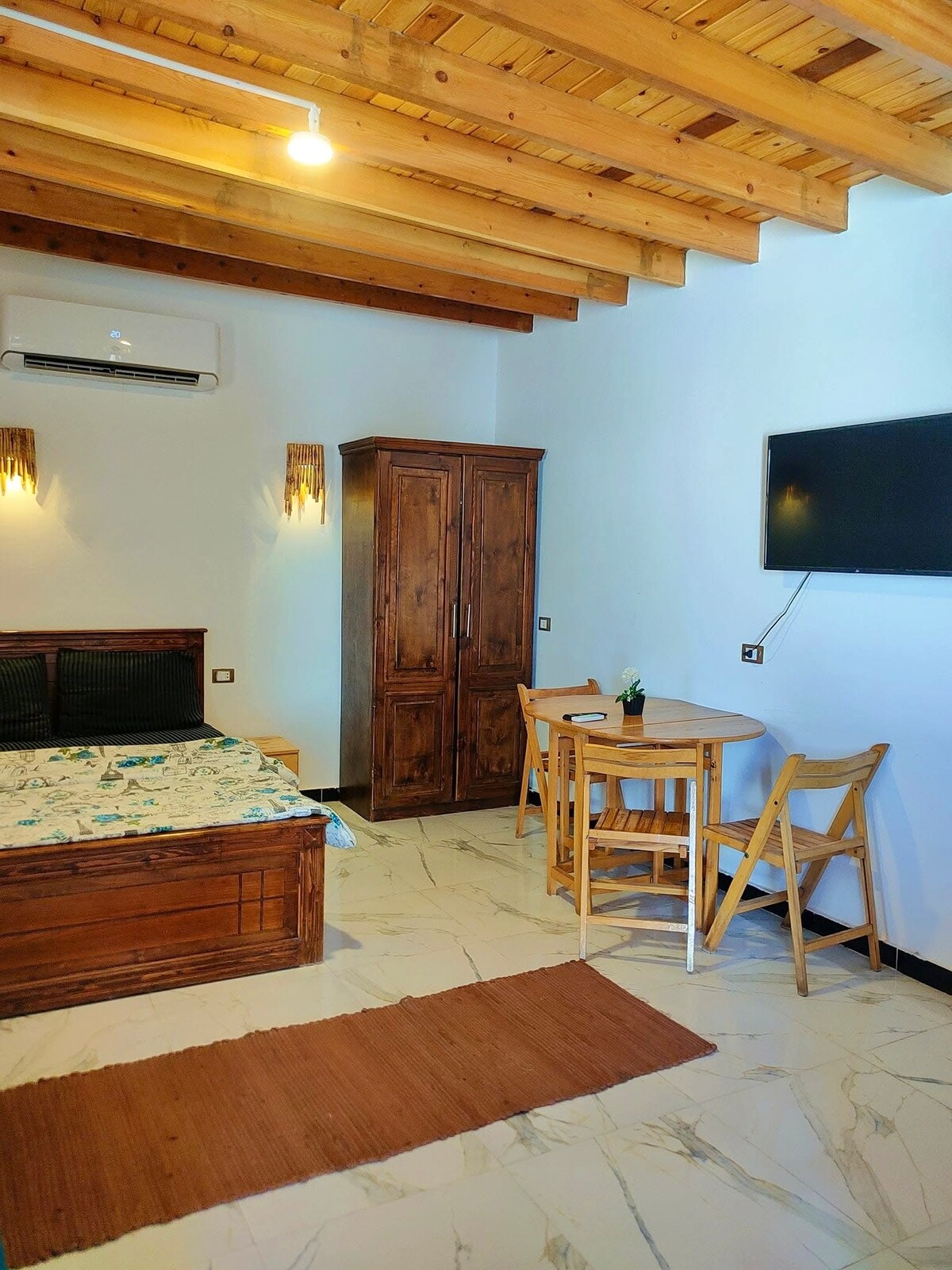 Welcome to your sun-soaked rooftop hideaway in Dahab’s prime Lighthouse area. Just a few minutes’ walk from the sea, cafés and dive centers, yet tucked inside a quiet courtyard away from the street. The highlight is a huge private rooftop terrace with wooden pergola and sea breeze — a perfect little escape above Dahab.