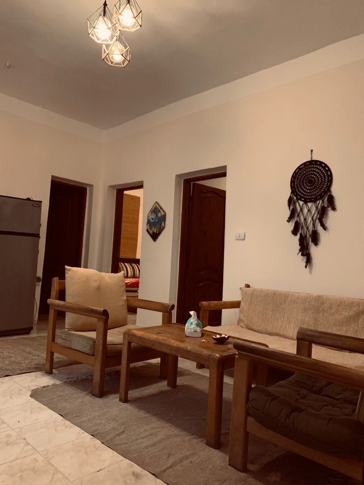Stay right by the beach in this comfy, fully air-conditioned apartment — perfect for families or a group of friends. Enjoy the fresh sea breeze, a sunny rooftop with chill spots and sunbeds, and an equipped kitchen if you feel like cooking. It’s just a short 10-minute walk to Assalah Square, where you’ll find shops, cafes, and local vibes. Whether you’re sunbathing on the rooftop, relaxing indoors, or exploring Dahab, this place has everything you need for an easy, laid-back stay.