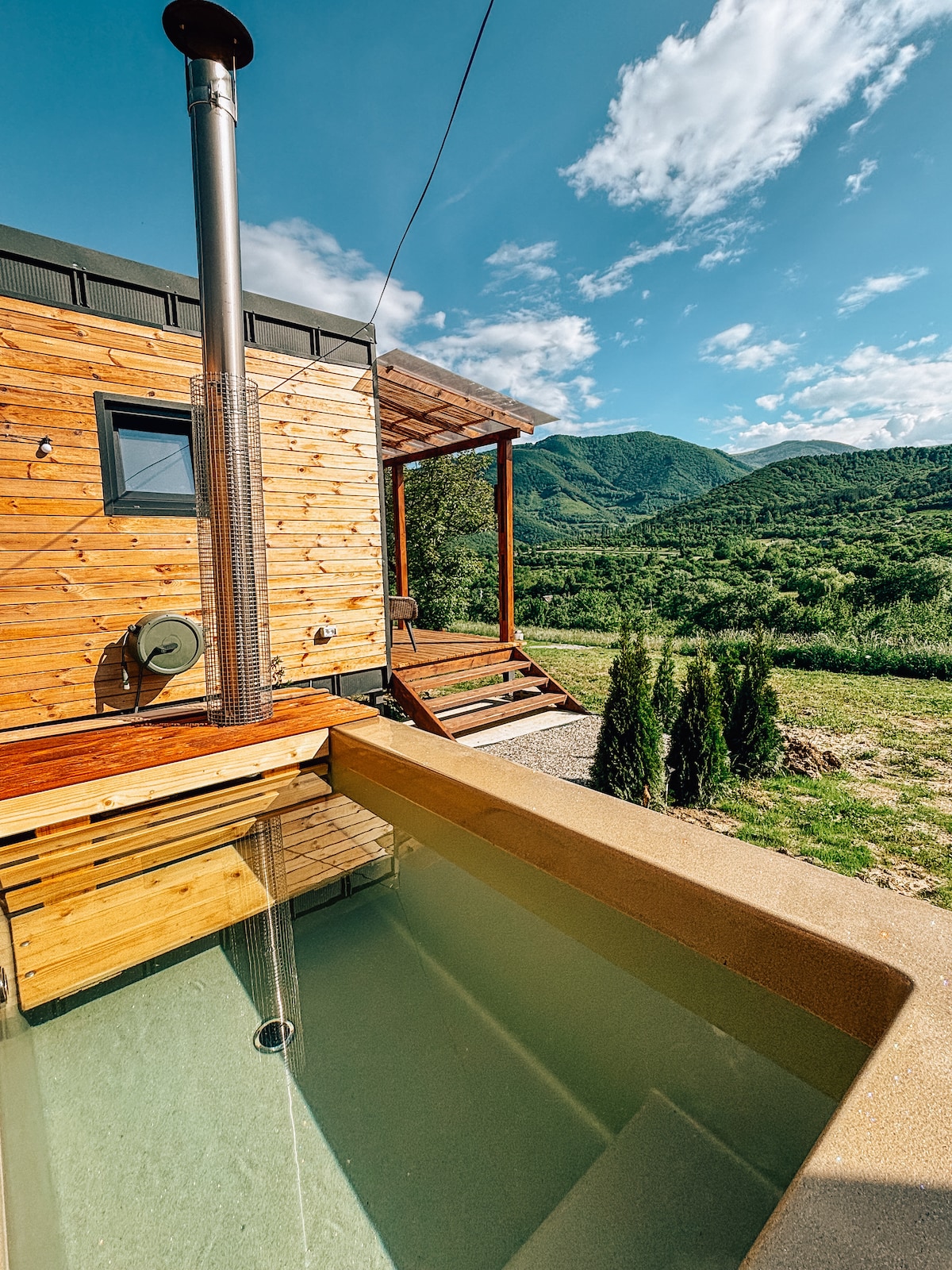 Escape the everyday in our cozy and charming tiny house Willow, nestled in the beautiful Transylvanian hills. Soak in your private hot tub with stunning views, relax on the terrace or watch your favourite Netflix series from the bed. Willow is warmly and romantically furnished, featuring a queen-size bed, fast Wi-Fi, and a bathroom with luxurious Rituals amenities. The perfect retreat for couples looking to unwind and explore the scenic surroundings.