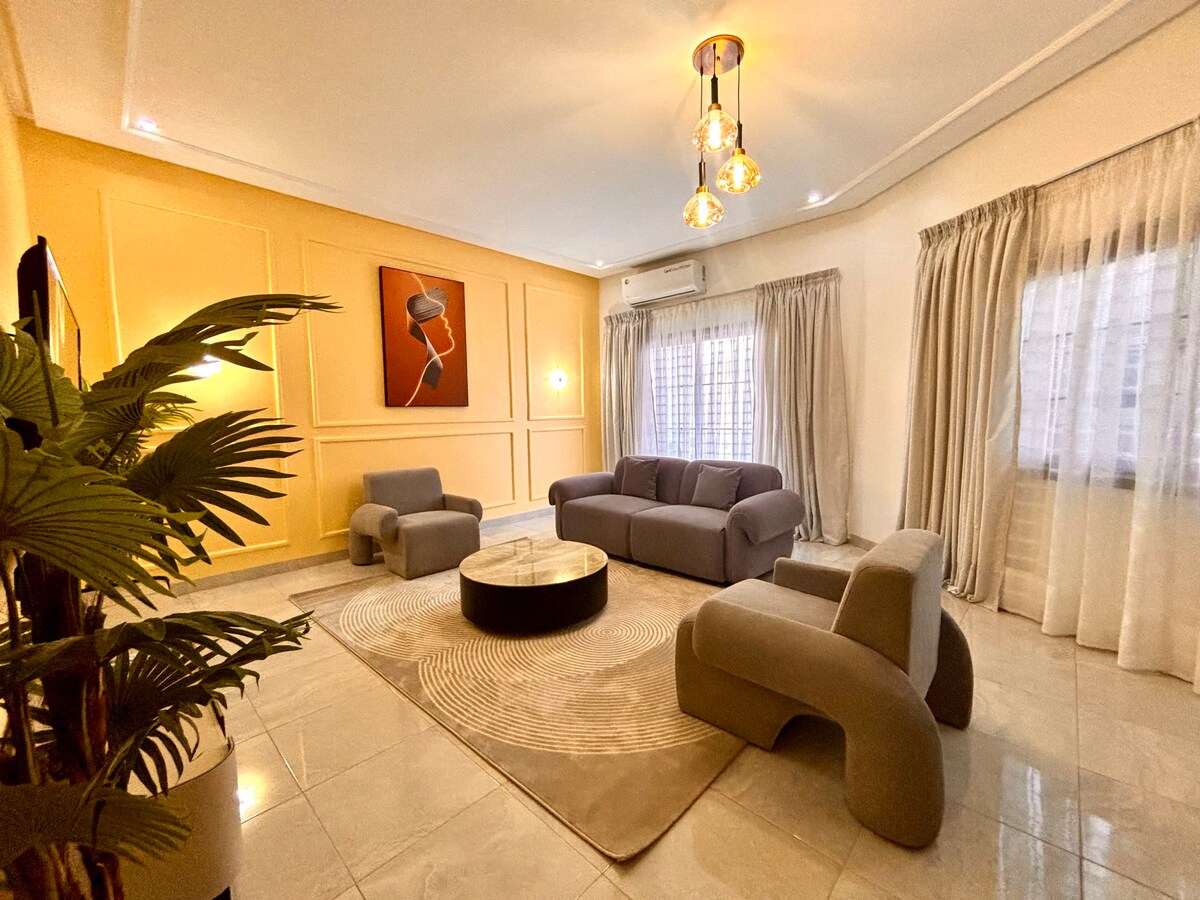 This unique place has a style all its own. 3 Bedrooms and 5 bathrooms with a spacious living room and a fully furnished kitchen. It offers free daily cleaning, AC in every room, and a 24/7 concierge for a seamless stay. Centre-ville and Almadies are just a short drive away. Unlike most Airbnbs in Dakar, we include electricity and utilities in the price! Enjoy added convenience with optional services like cooks, babysitters, tourist guides, and airport shuttles tailored to your needs.