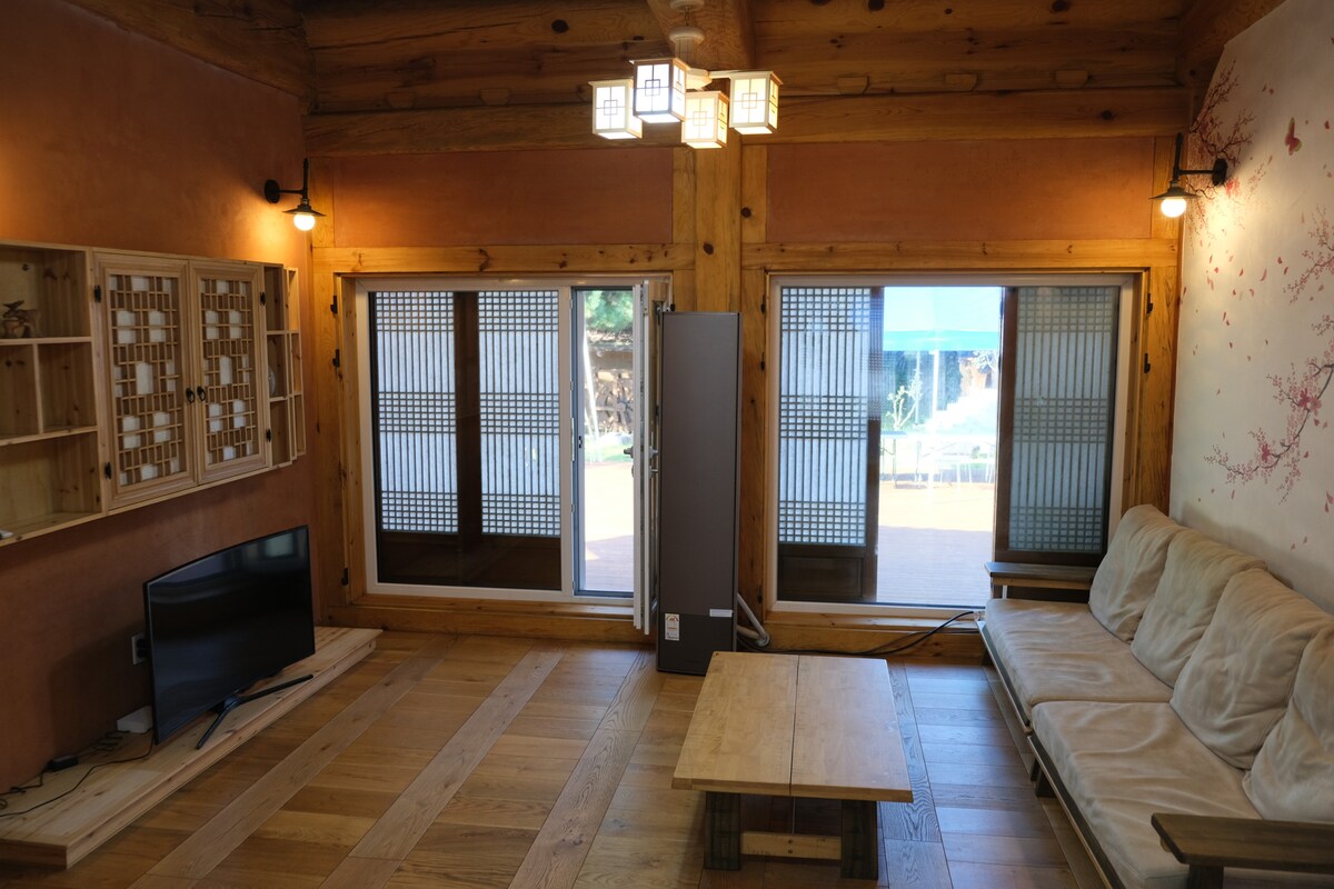 ■ Simple breakfast/fruit/Drip-coffee provided ● Gudeul Fireplace - Our Hanok Pension with a Pavilion ○ In winter, take a break with the whole family in a peaceful accommodation filled with cypress scent with a cozy firewood heating room, and in summer, with pleasant cooling. ● Built with Korean pine, ● Built with eco-friendly loess, ● Finished with cypress and hanji ● It is a traditional Hanok. ○ Especially in winter, when oak firewood is burned and the lower part is heated, it has a steaming effect. ○ Provides a pleasant environment in the summer ○ Calm and stylish ○ With a peaceful sleep and rest at the accommodation ○ Enjoy your healing time ^ ^ ♡