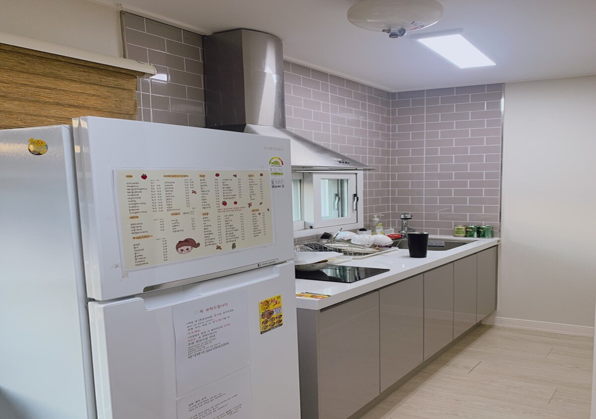 This is a pleasant, cozy, and warm accommodation that feels like my home, located a 3-minute walk from the back door of Gwangju KTX Songjeong Station. As a new building, all furniture and bedding are brand new. Parking available (If you contact us in advance, we will register you for free) Condiments are not provided among the amenities.