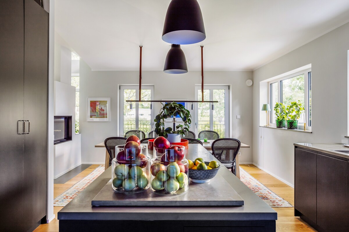 Welcome to this unique and quiet house on the cozy and car-free island of Tranholmen, just outside Stockholm's inner city. A nice architect designed house where you can have breakfast at sunrise and end the evening on your private big dock right by the water at sunset. Many different places at the location to enjoy that inspire you to swim, relax and cook and eat outdoors. Wood-fired sauna for up to 8 people. An outdoor shower just outside the sauna and the guestroom. There are 4 bedrooms