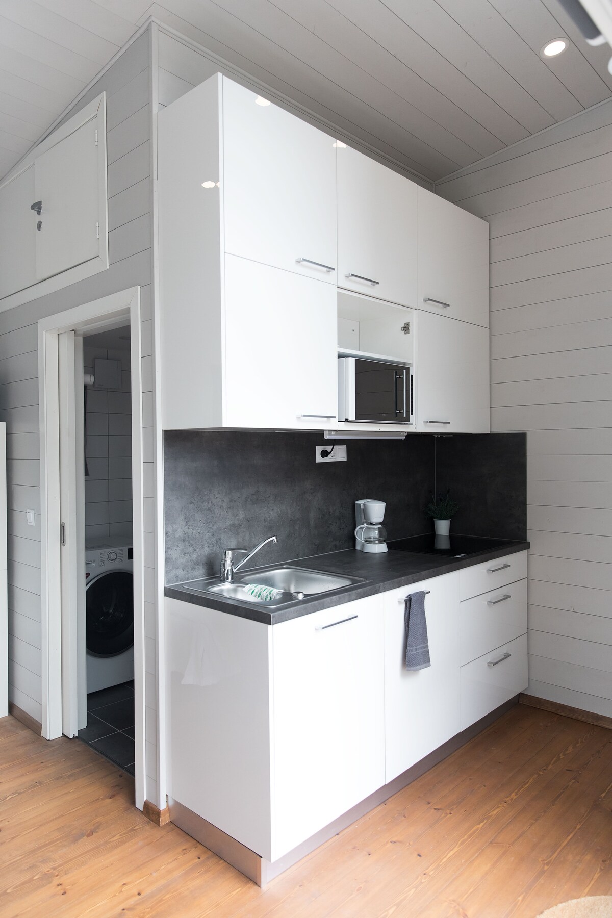 Newly built & furnished 30 sqm studio apartment with private entrance from a lovely patio with afternoon & evening sun, located in a quiet, charming residential area, 4 min walk to shopping mall & Metro -10 min ride to central Stockholm. Includes free parking. Well-equipped modern kitchen & in a separate section is a wardrobe, washer, dryer, & a bathroom. Wi-Fi with fiber connection’s included. Golf course, swimming, and supermarkets, restaurants, metro red line & buses are very close by.